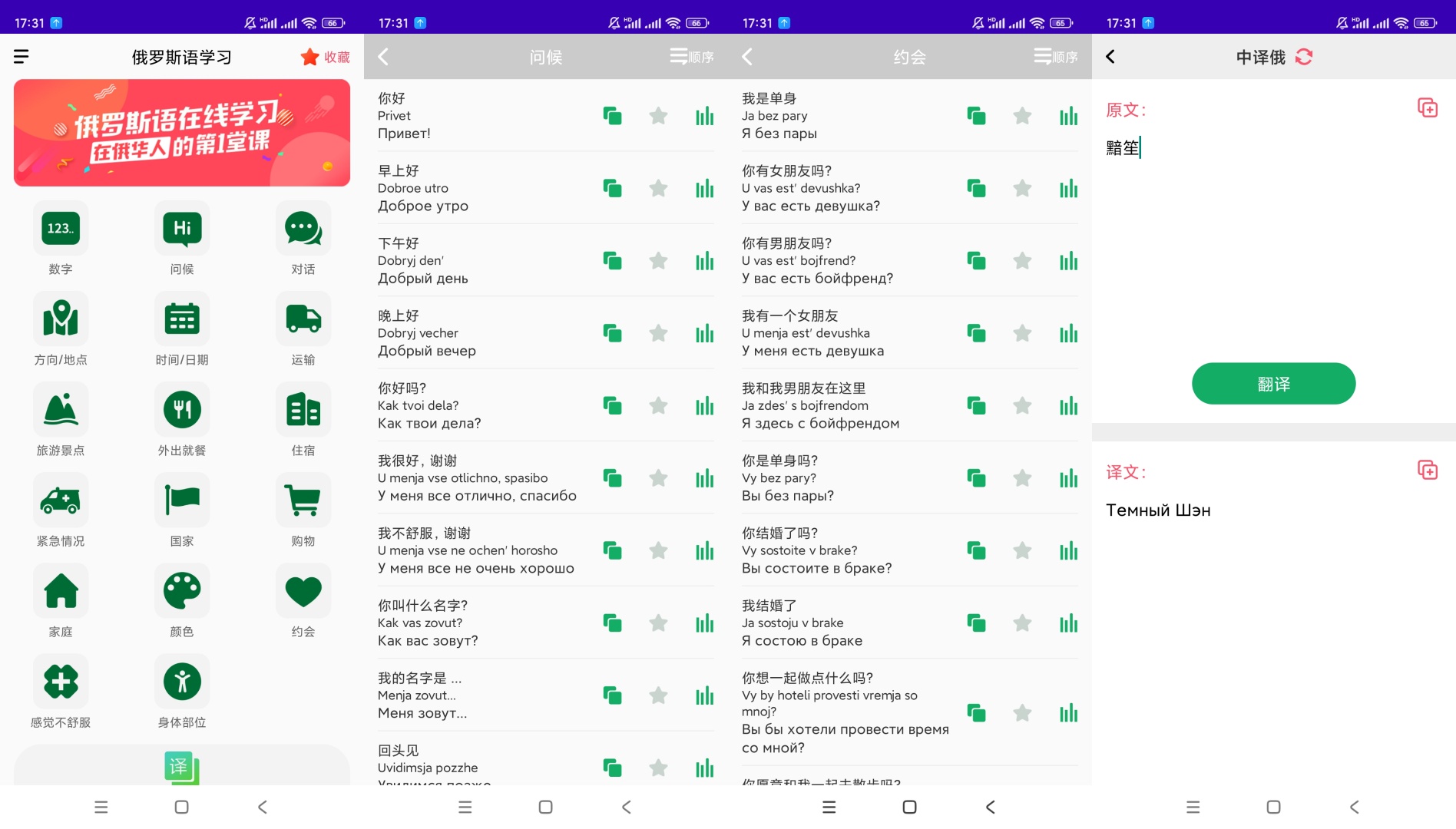 【官方介绍】:天天俄罗斯语APP是适合初学者学俄语的软件,APP内置丰富的场景单词和例句,包括数字、日常问候、时间日期、方向地点、旅游景点、外出就餐、紧急情况、身体部位等,每个单词都有详细语法和词汇解释,方便用户随时在线学俄语,有兴趣的用户欢迎下载。