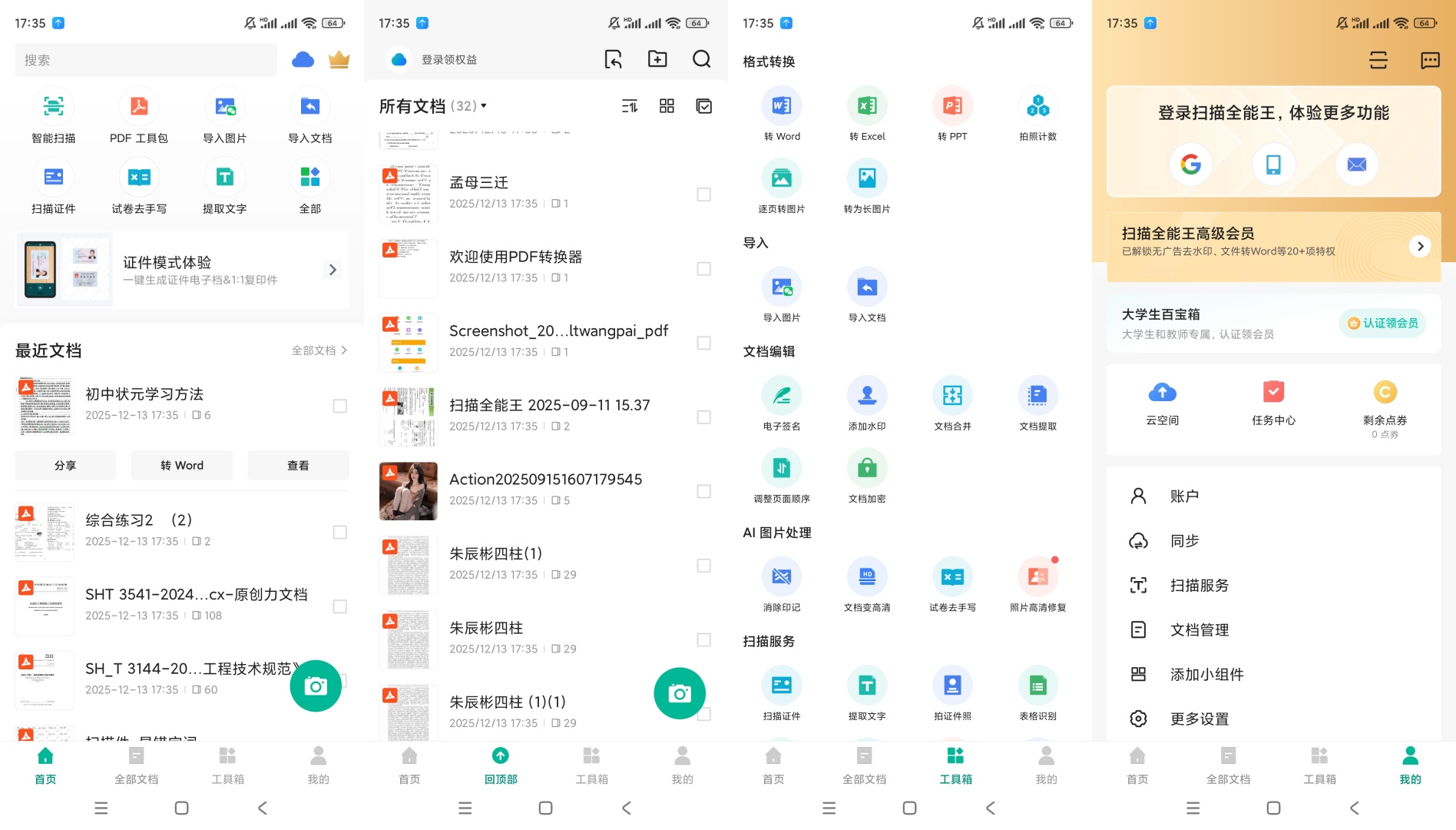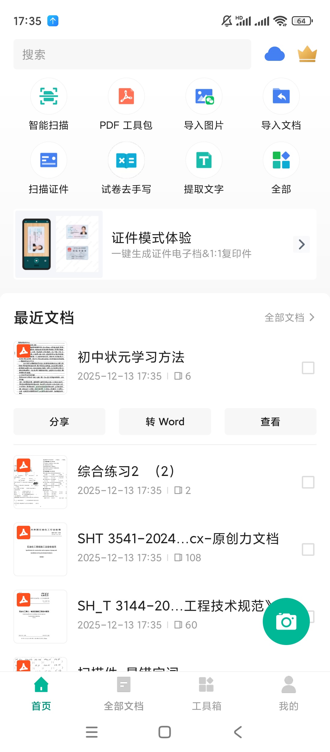 扫描全能王是一款集文件扫描、识别翻译、图片文字提取识别、PDF文档编辑、PDF加密、PDF转Word文档转换、文档防盗、电子签名等功能于一体的多功能智能扫描仪软件。
