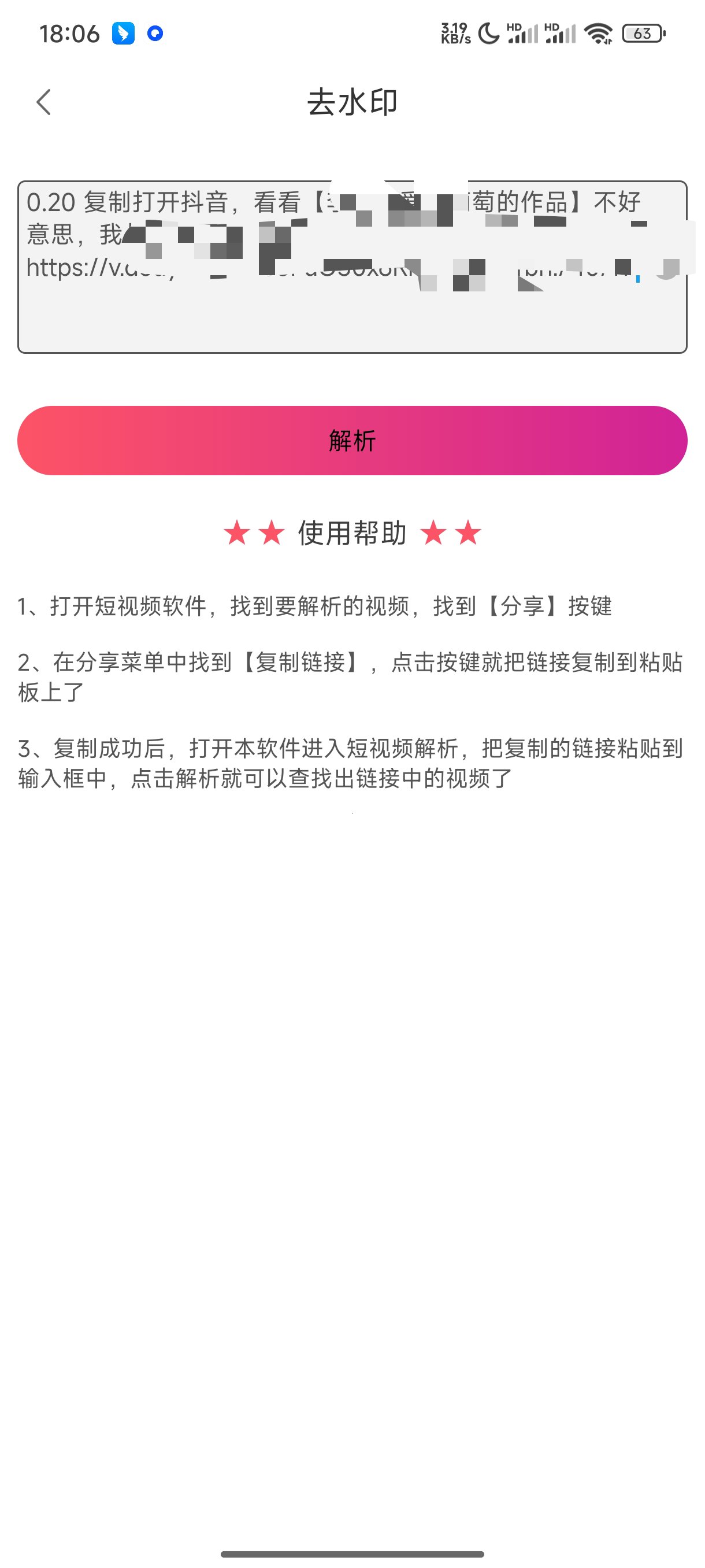 视频解析:粘贴平台视频链接,提取无水印原视频;
