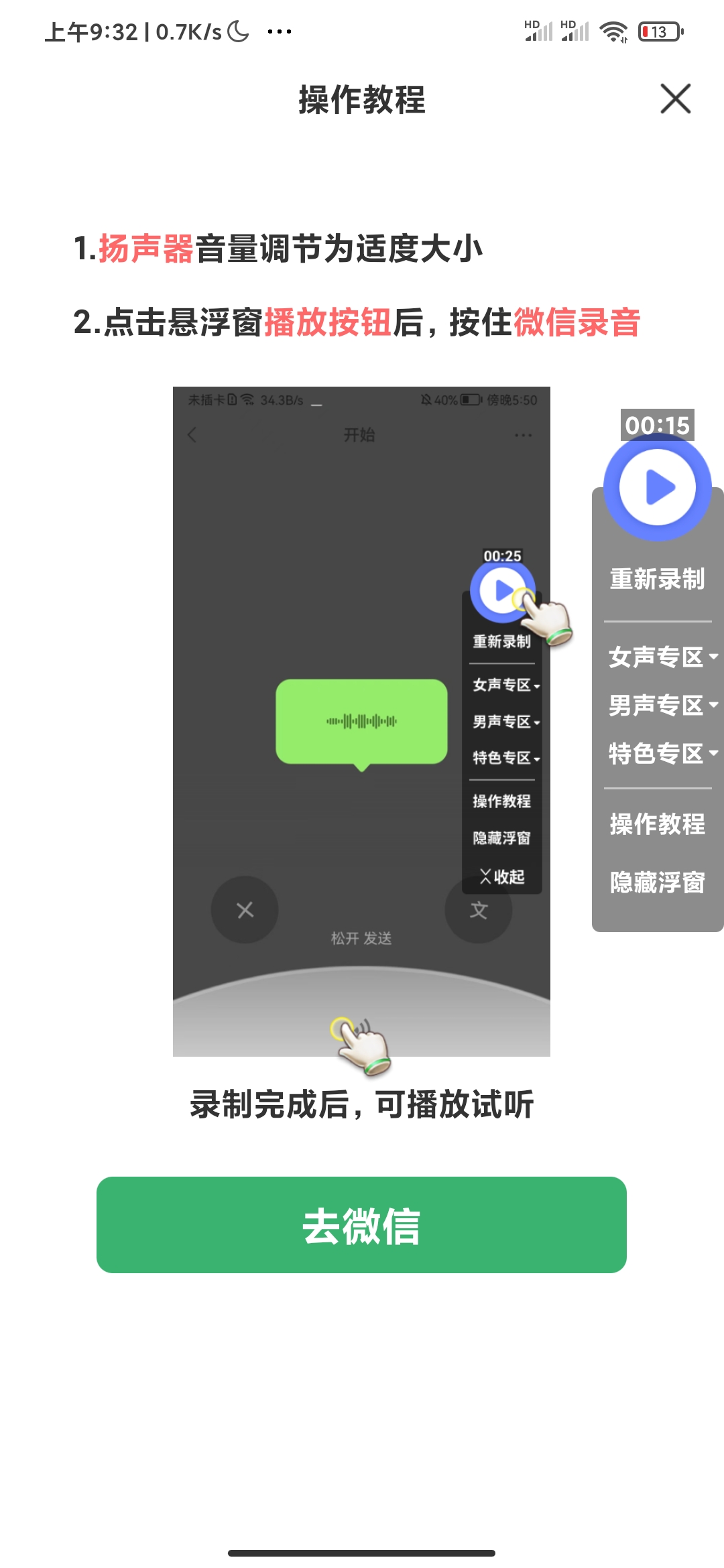 - 全风格音效全覆盖:内置萌妹、御姐、大叔、卡通等数十种热门变声效果,适配语音聊天等场景,