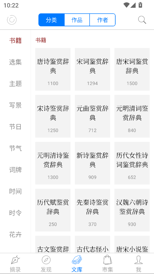 分类赏析 - 诗经全集、古诗十九首等选集,爱情、离别、思乡、壮志、田园等主题,春夏秋冬、山水日月等写景,中国传统节日与24节气。