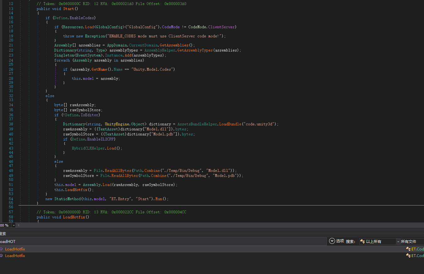 常规dump,找到了大量关键方法。但是在dll中却不存在,地址也都是一眼假。既然能通过反射拿到。那我们继续深度研究源码