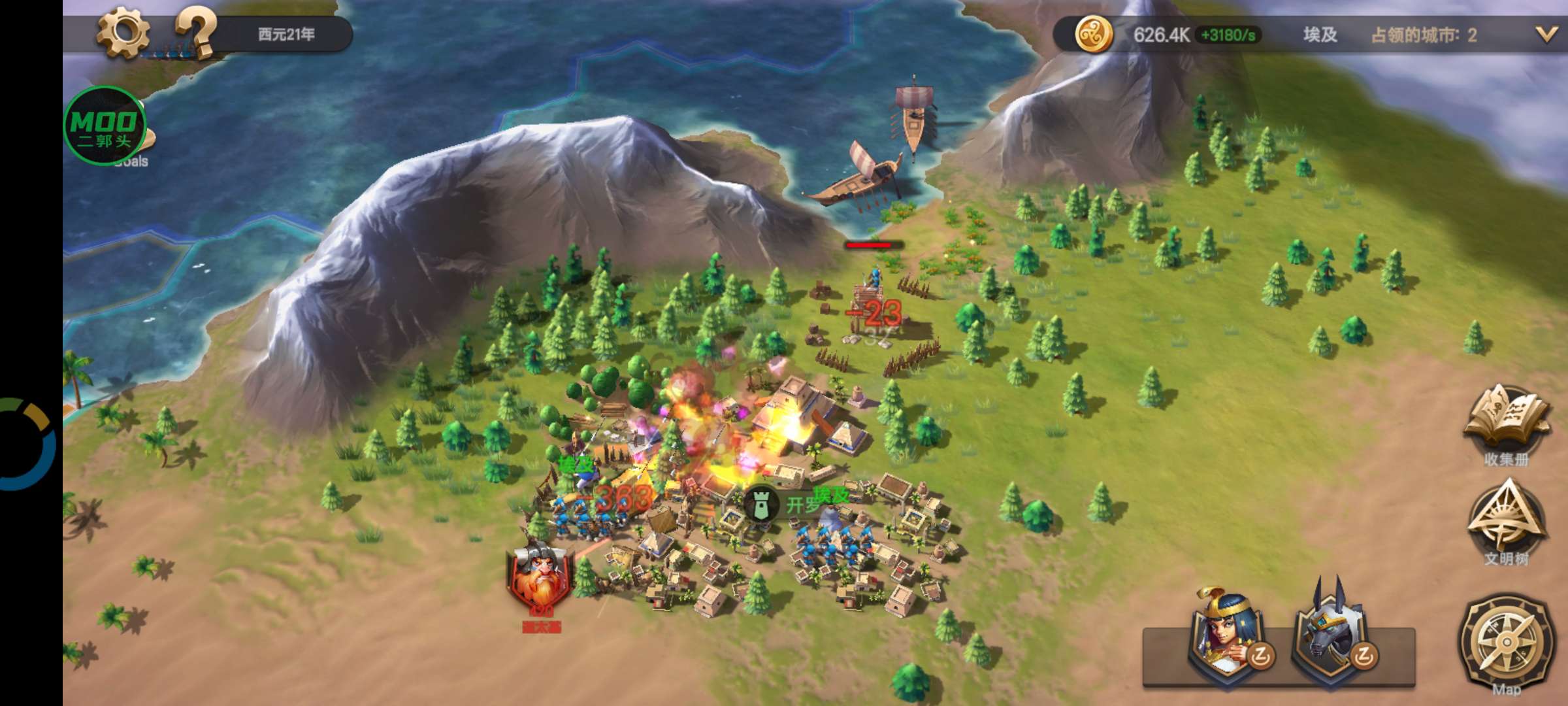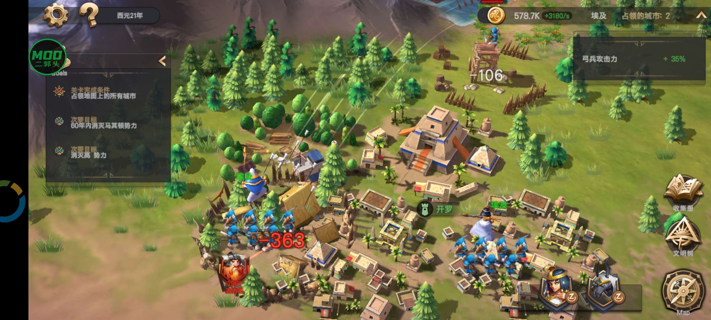 自由移动您的军队在地图上,并使用远程武器围攻敌人文明。