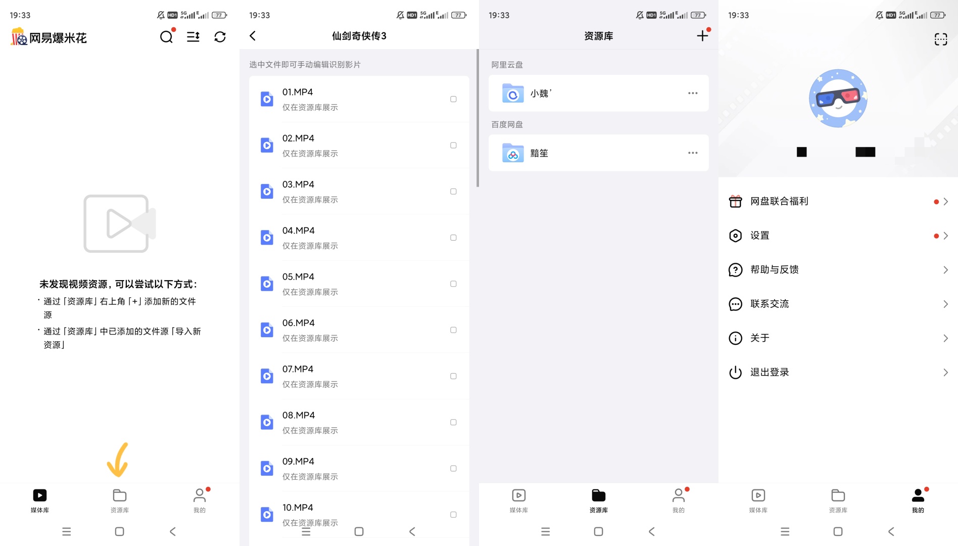 【官方介绍】:网易爆米花 (原Filmly) 是一款媒体库播放器应用,支持直连网盘影视资源(目前支持阿里云盘和百度网盘)。支持自动刮削封面海报(刮削数据依旧来自 TMDB)、智能识别影片信息、海报墙等功能,但目前并不支持本地视频。目前该应用界面比较简单,只有媒体库和我的两个选项卡,在绑定阿里云盘。百度网盘的媒体库之后即可观看视频,界面支持按钮式横屏切换、倍速、10 秒快进 / 后退、音轨选择、字幕选择,暂不支持在线字幕。