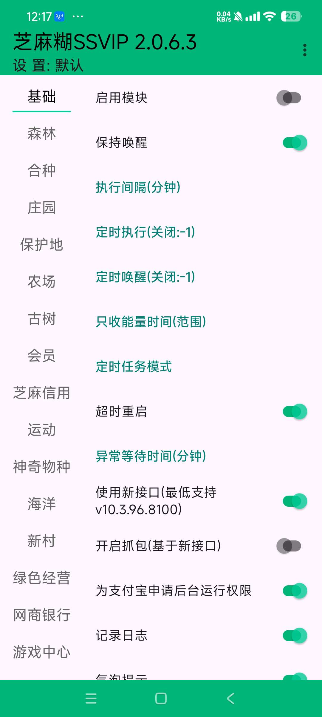 【应用简介】使用方法,先下载芝麻糊导入配置后,,然后登录支付宝,前面会闪退一两下,后面就不会了,登陆后会显示芝麻糊加载成功,权限不用给。显示芝麻糊禁用的话,设置重新打开芝麻糊插件。配置可以导入 也可以自己设置 。