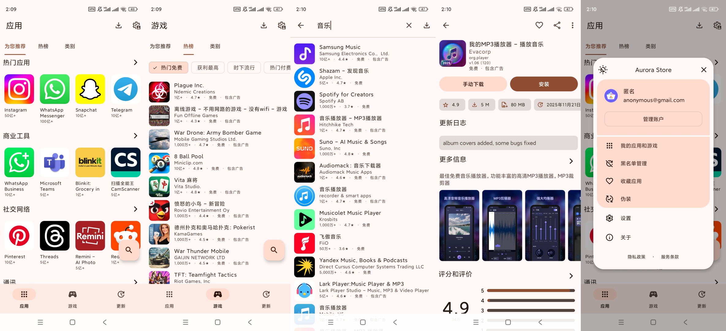 【官方介绍】:Aurora Store是一款功能强大的第三方应用商店软件,专为Android和iOS用户设计,旨在替代Google Play商店。它提供丰富多样的应用资源,涵盖游戏、工具、娱乐、社交等多个领域,满足用户多样化的需求。作为Google Play的替代品,Aurora Store无需安装谷歌全家桶即可使用,支持匿名登录和隐私保护功能,用户可以自由选择是否使用Google账户登录。其开源特性使其在隐私保护方面具有优势,用户数据安全性和操作透明度较高。
