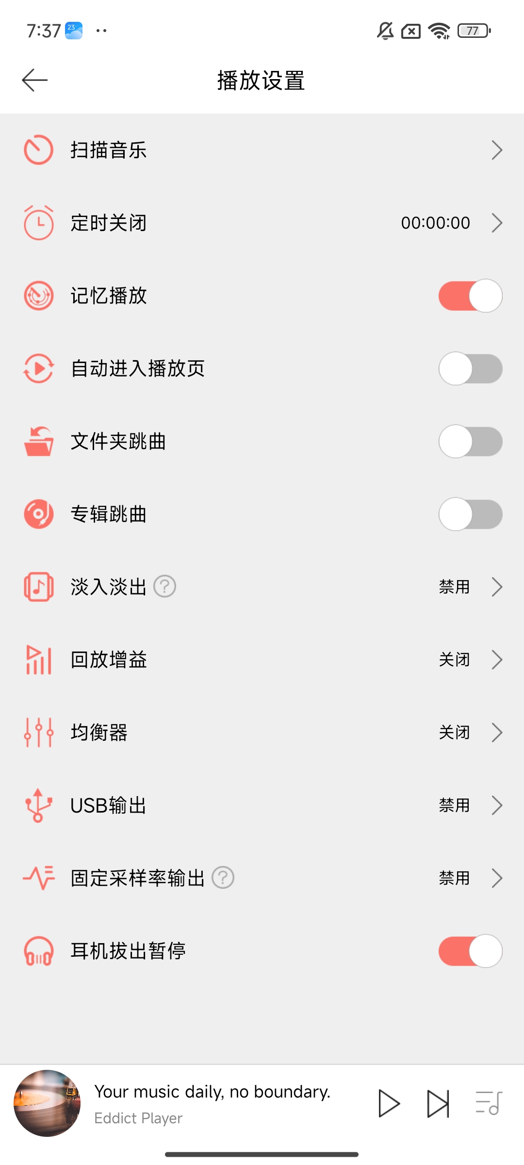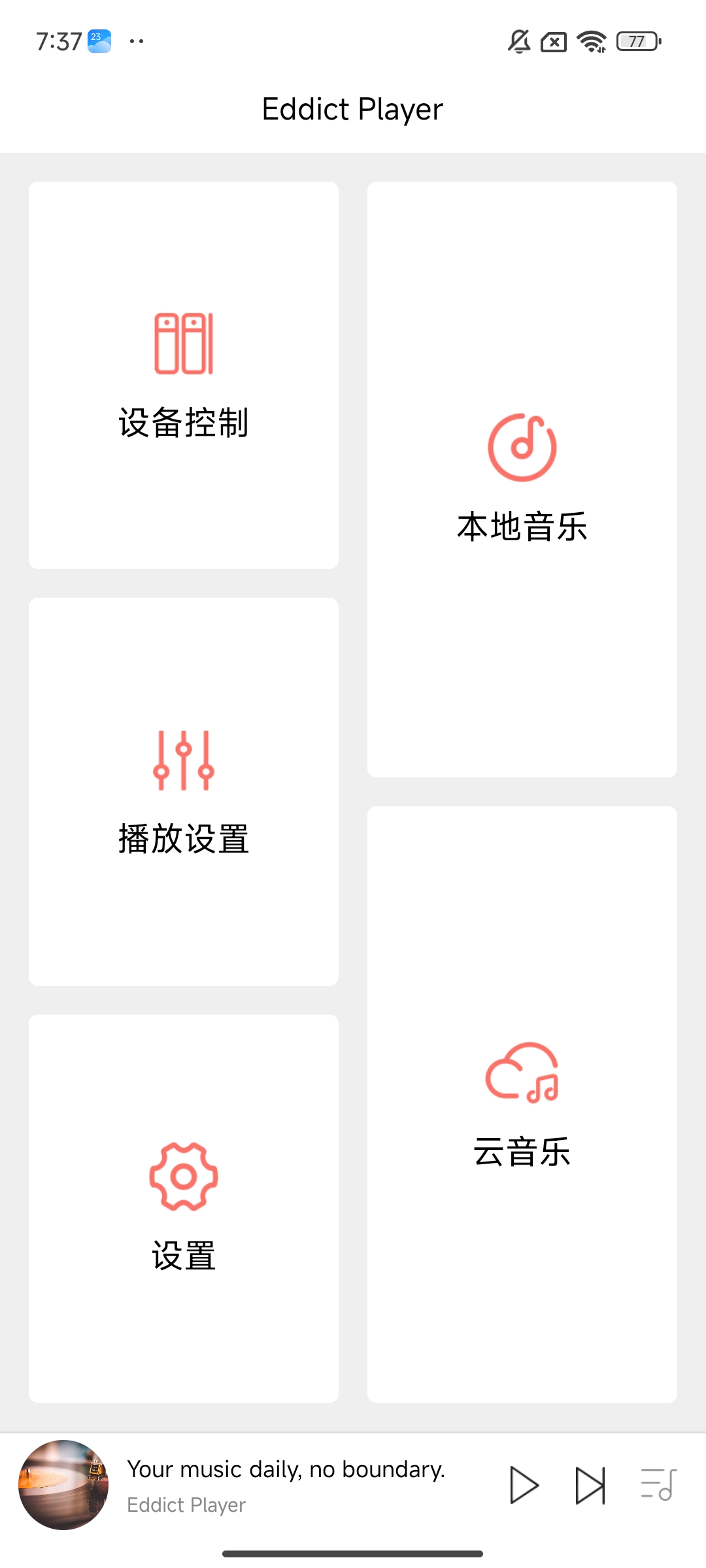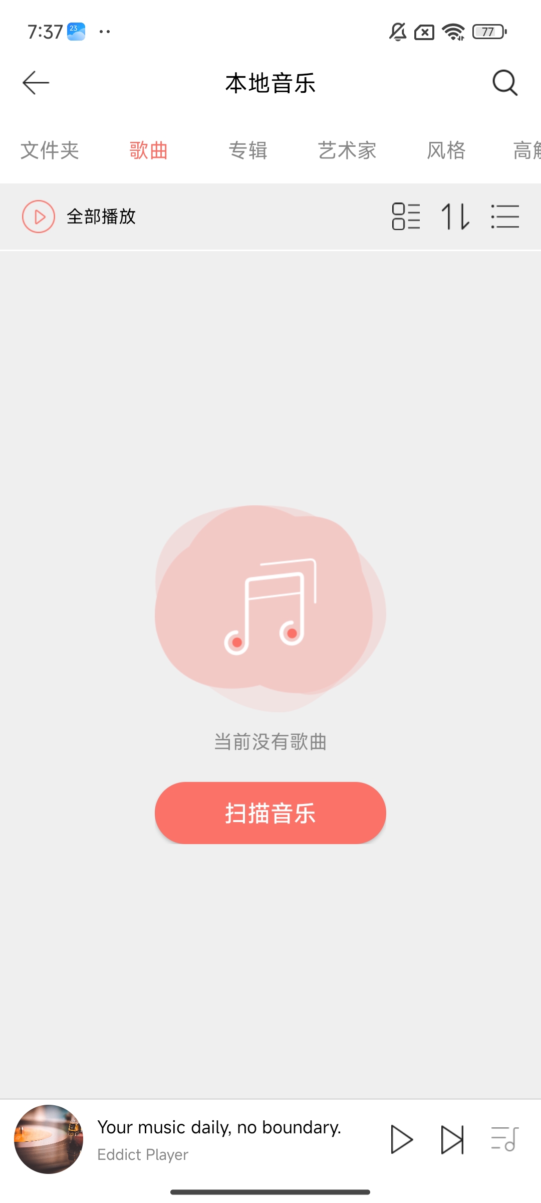 Eddict Player是一款功能强大的音乐播放器工具。这款应用支持多种音频文件格式进行导入,还会自动的检索手机本地音频文件,让用户可以轻松的在这款应用中收听你喜欢的音乐。应用中还有智能的分类功能,也支持用户自行添加歌单或专辑,创建你的音乐列表。