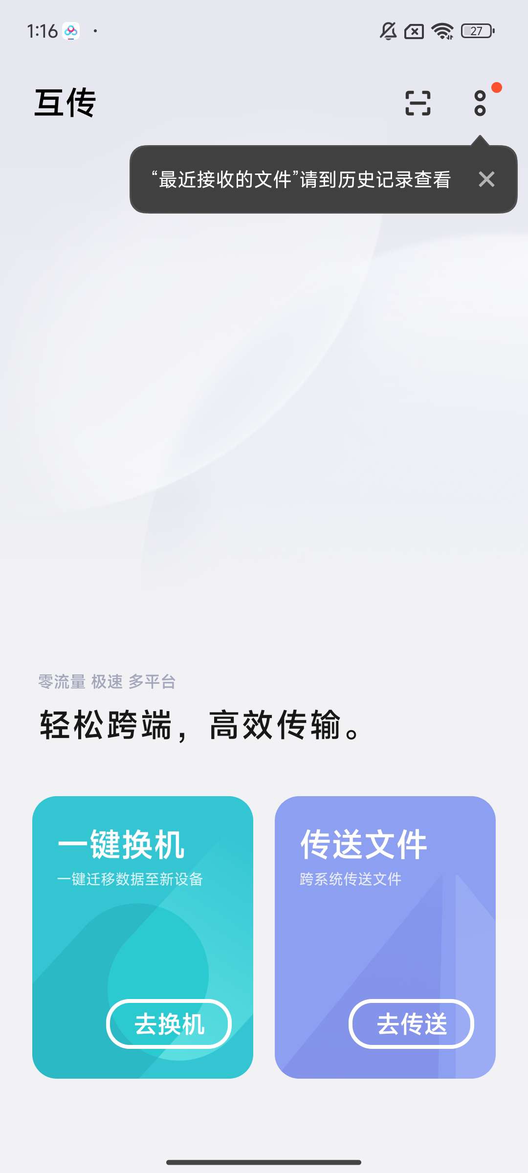 【官方介绍】:《互传》超过两亿人使用的跨平台零流量文件传输利器。无论身处什么环境,使用互传极速分享音乐、电影、应用、图片。Android和Android, Android和iPhone,手机和电脑,互传支持各种形式的连接传输。 【一键换机】使用互传一键将旧手机中的数据完美拷贝到新手机中,联系人、那些年的老照片、爱人的聊天记录、下载的
