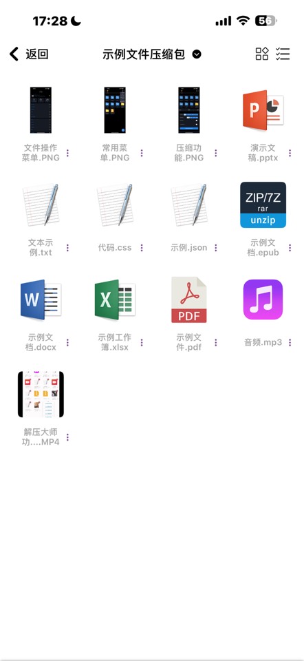 -支持解压格式有ZIP,7Z,RAR,TAR,APK,GZ,BZ2,7-ZIP,BZIP2,LHA,CAB,LZX,TGZ,BZIP,TBZ,ISO,DEB,JAR,RPM,CBS,BIN 等几十种格式