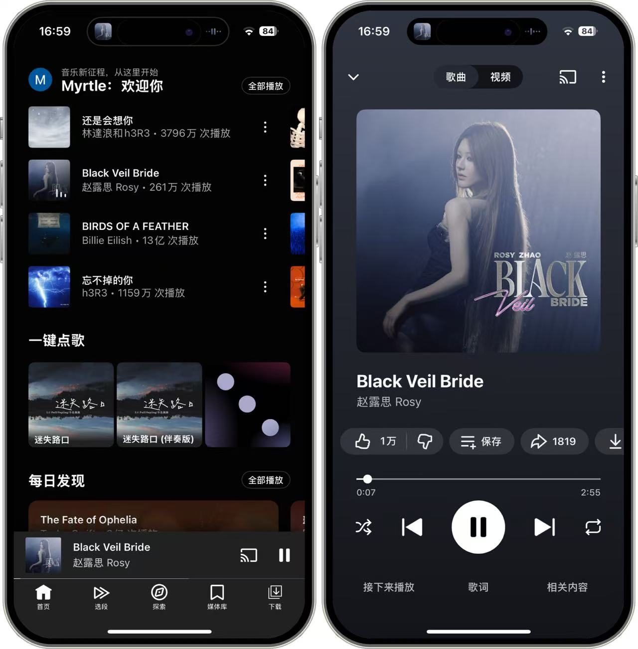 特点:无限畅听, 可从插件中设置去广告,后台播放,显示播放速度按钮,复制歌词,主题设置,导航栏设置等。