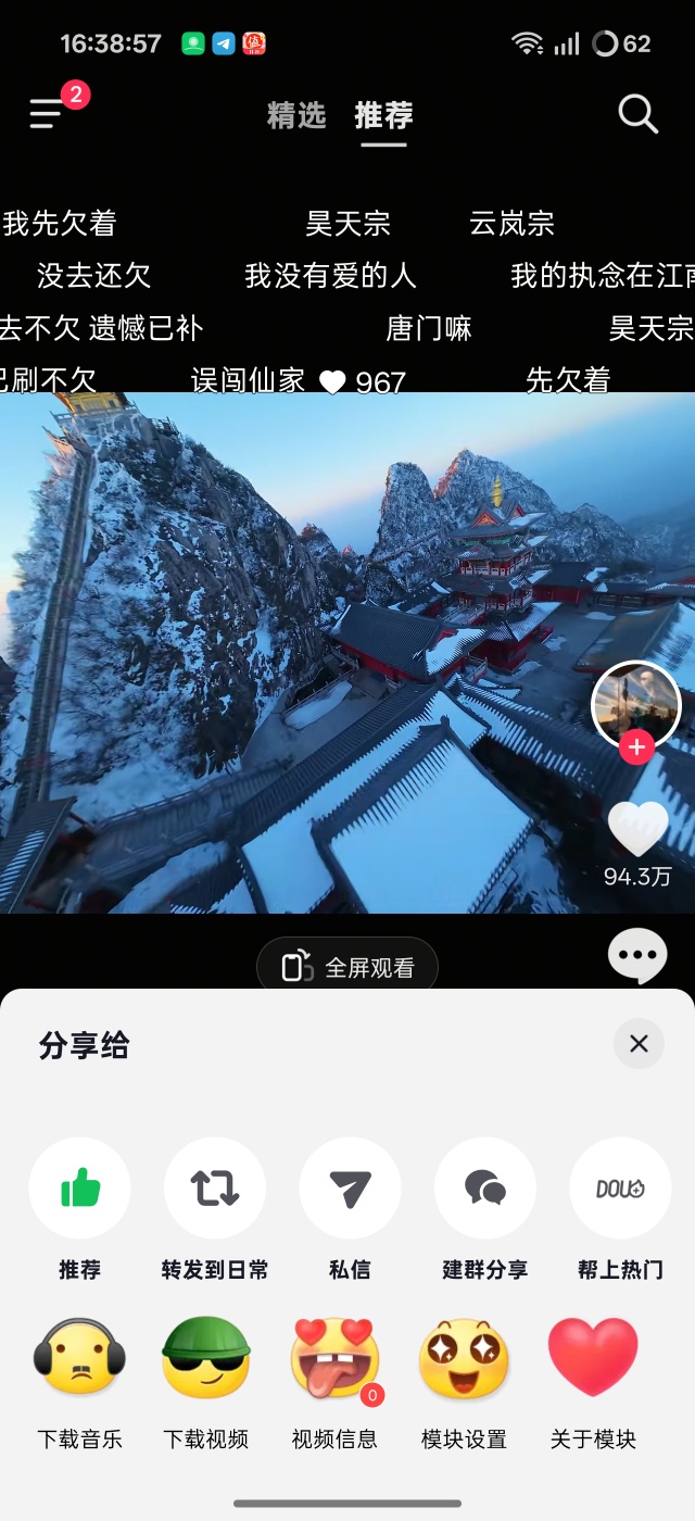 功能在分享页面 支持调节视频控件透明度 隐藏相关控件 查看视频信息等一大堆功能 但是好像不支持内置得用FPA或者LSPosed