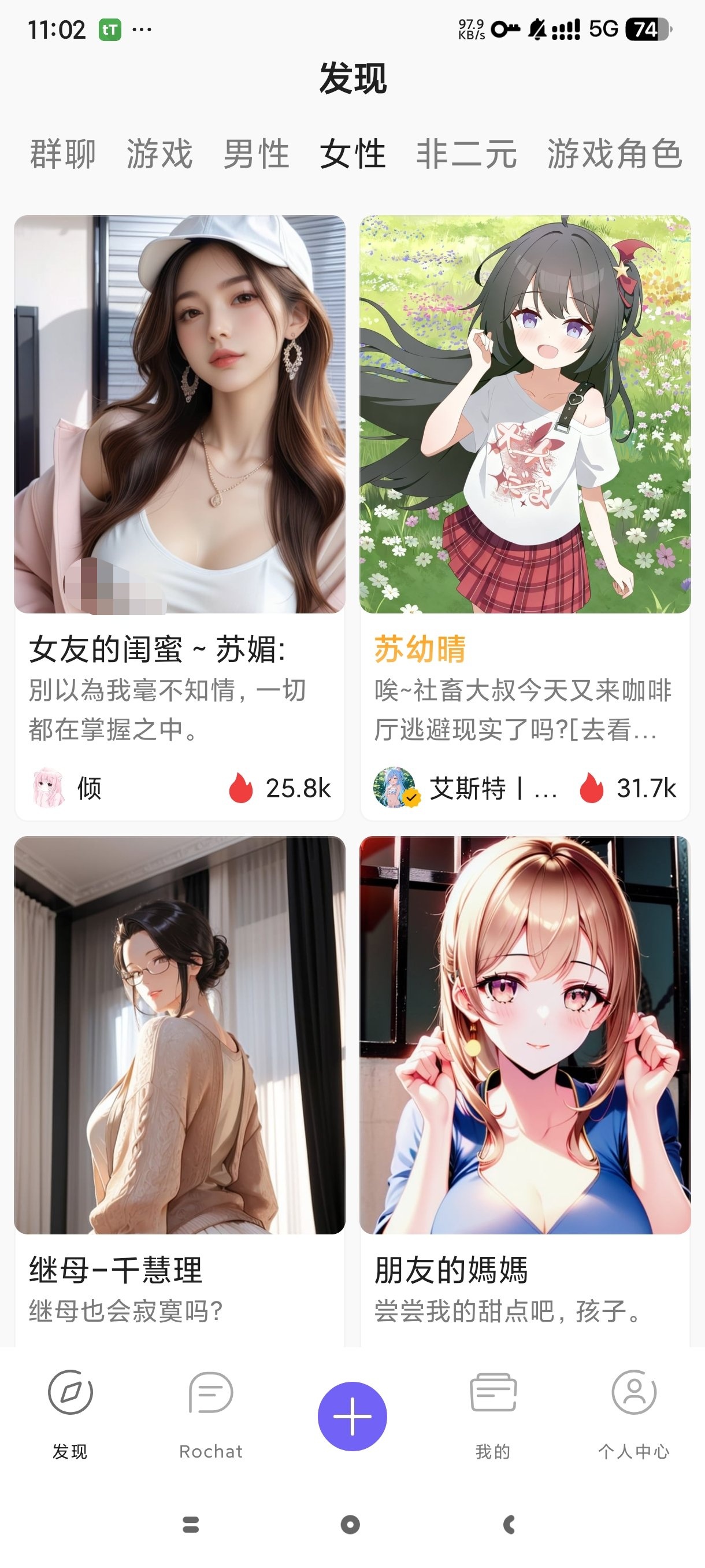 【应用简介】Rochat是一款AI智能聊天软件。软件集娱乐、聊天和游戏为一体,不仅有丰富的角色模组,还有不同角色的故事游戏模式,您可以和这些虚拟角色进行对话和聊天,还可以展开故事模式进行更具有代入感的游玩。软件内所有回答均为AI回复,非常智能。此外,您还可以创建属于自己独一无二的AI角色,慢慢培养您的角色,让它更加符合您的对话习惯。有需要的小伙伴快来本站下载体验试试吧。