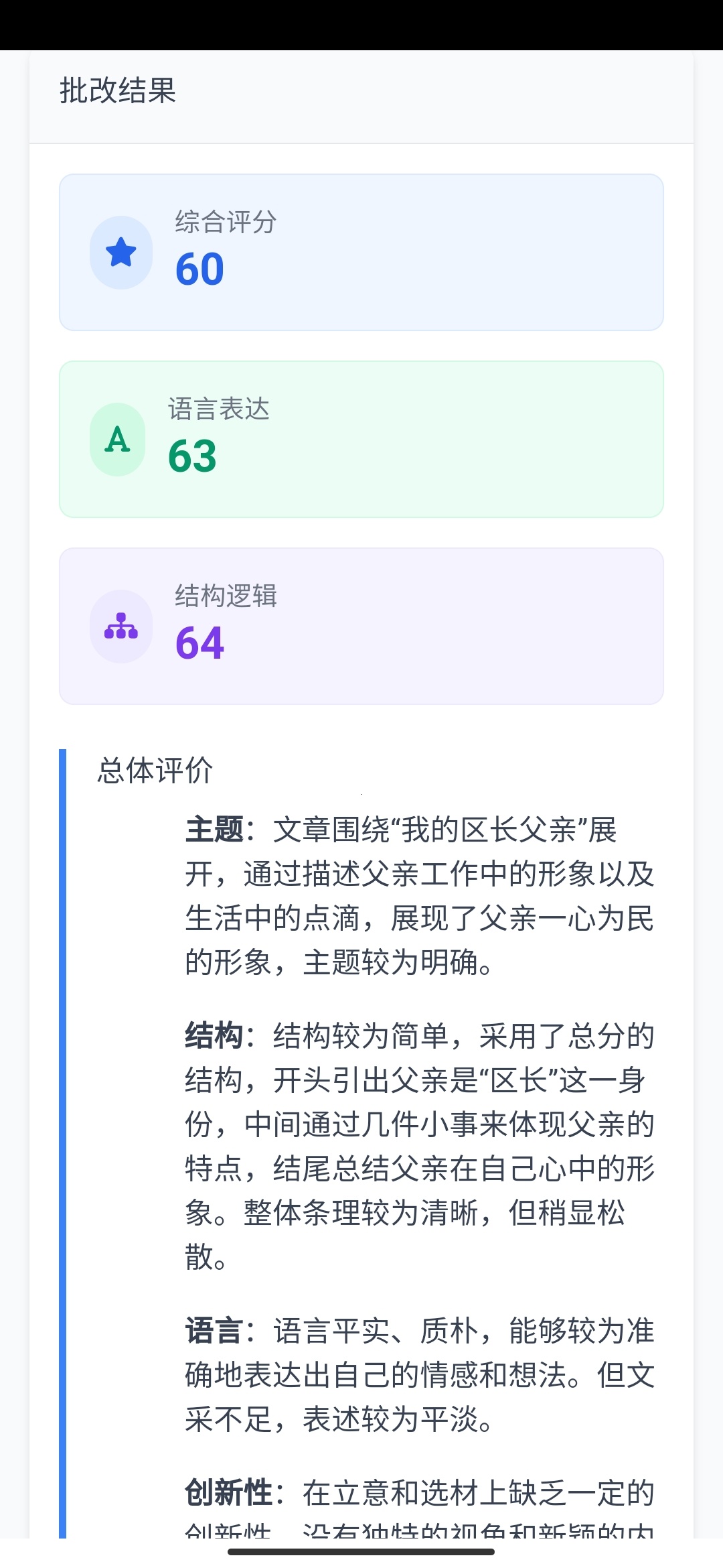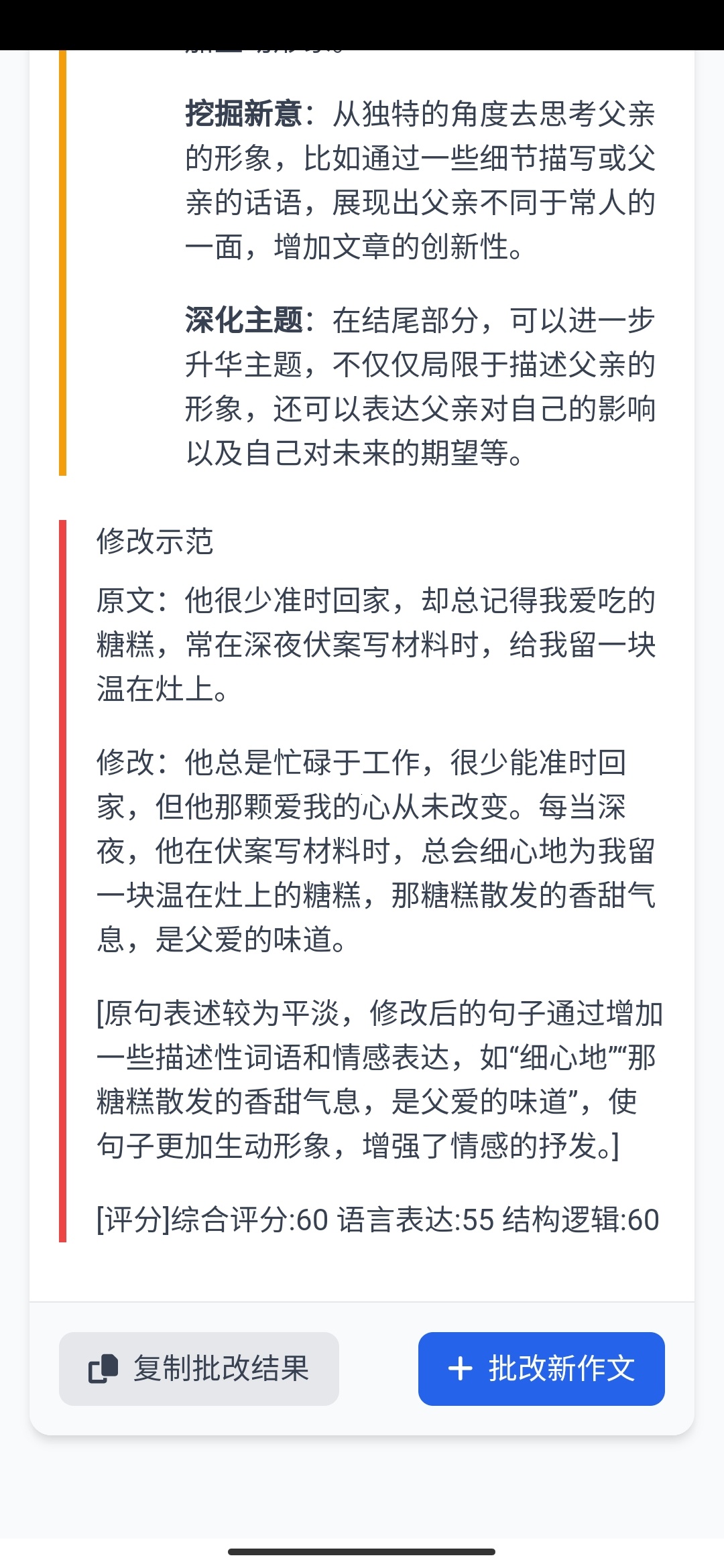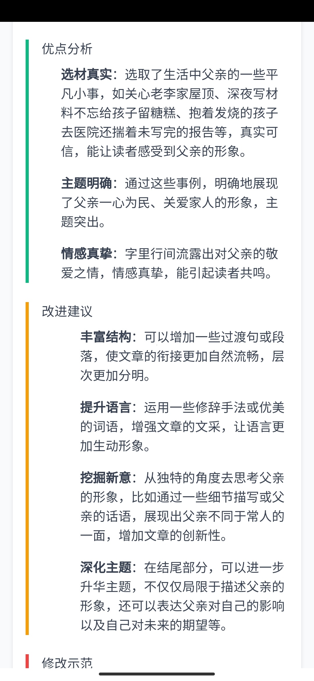 分层精准改:从小学1年级到大学4年级,匹配对应学段标准,错字病句、逻辑结构、表达亮点一键揪出,还按基础/提升/优阶给专属修改方案,改得比老师还懂你;