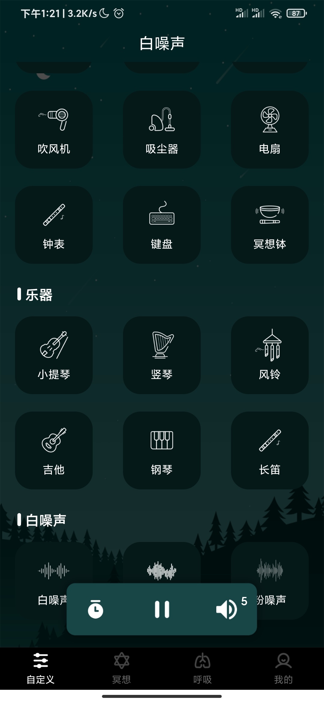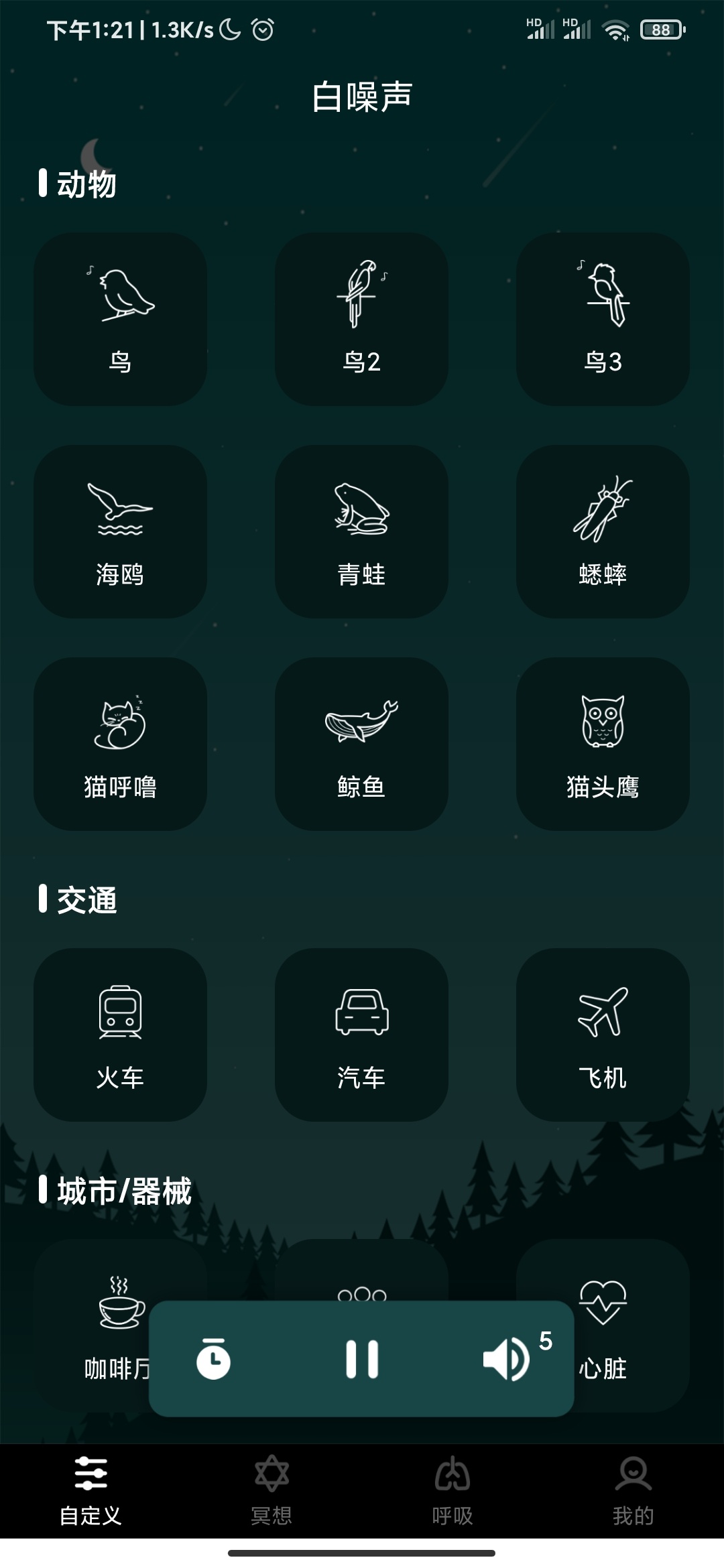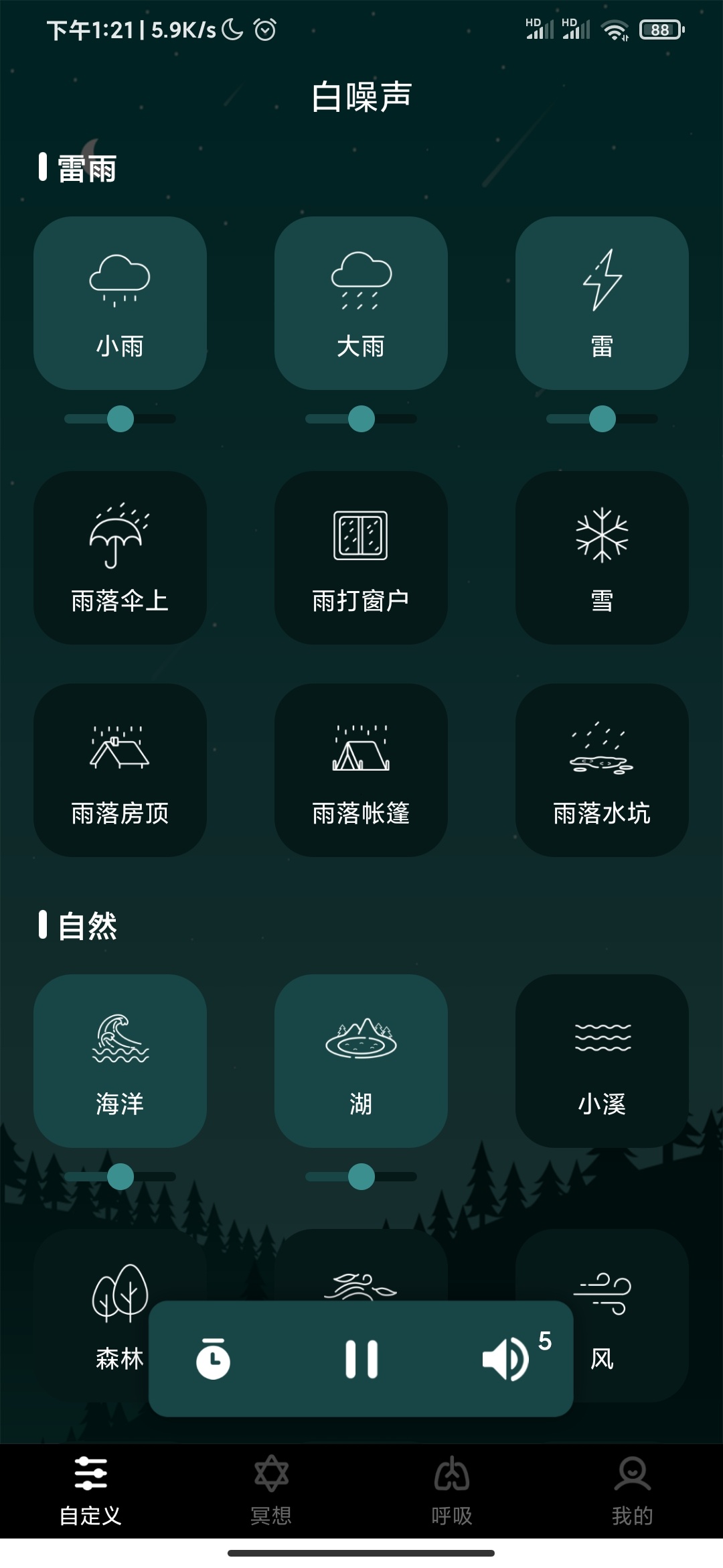 2. 自定义混音:能把5种音效组合成专属的助眠背景音;