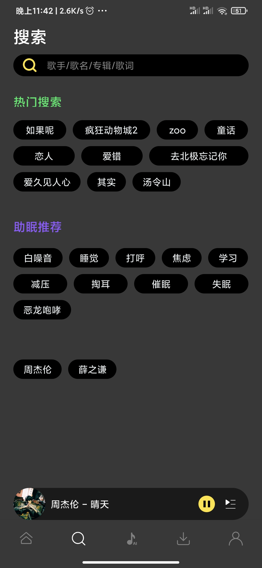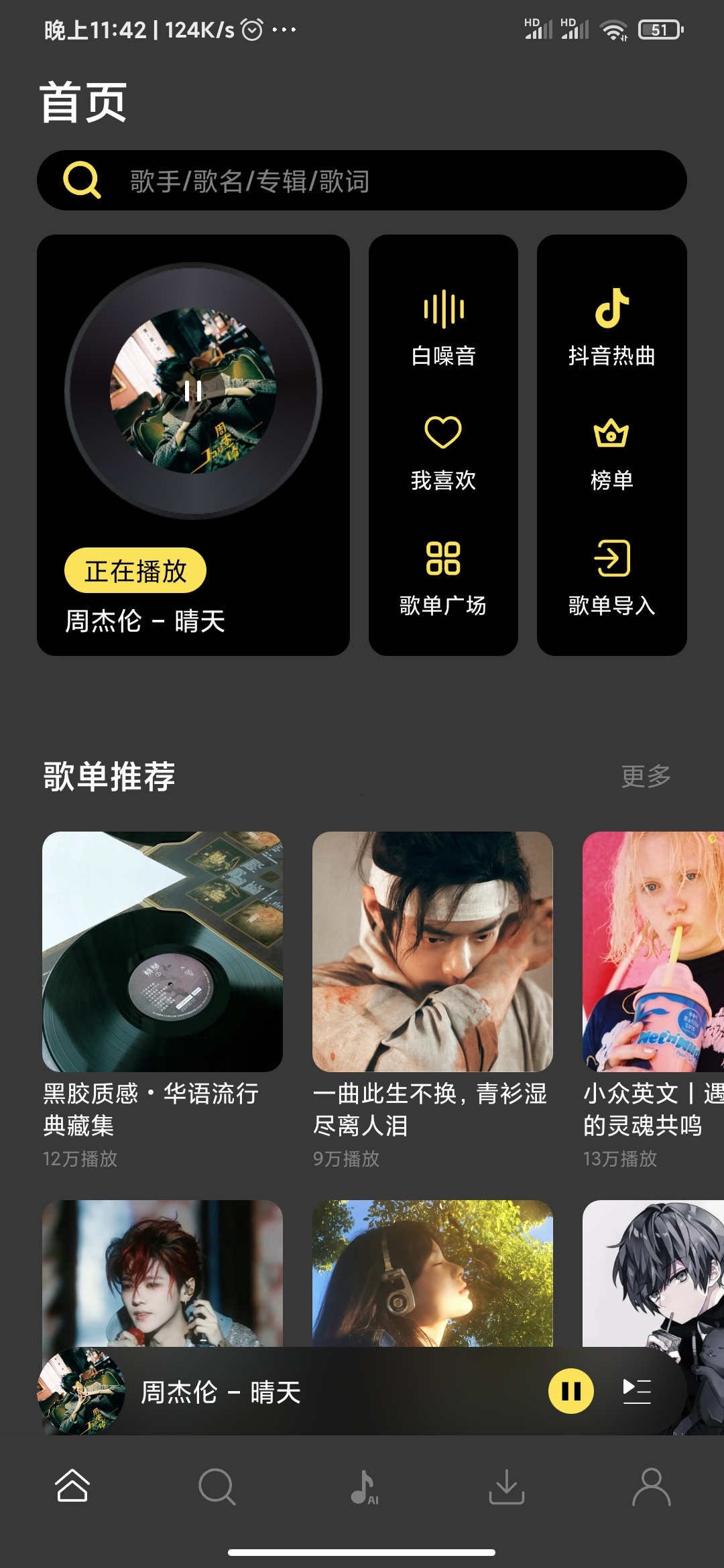 资源丰富:汇聚全球热门曲库,包含各大平台榜单歌曲,涵盖流行、摇滚、古典等多种类型,还有白噪音等特殊音乐。