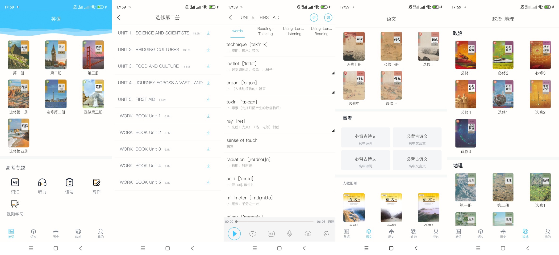 【官方介绍】:掌上高中是一款有声的高中教材APP。包含英语、语文、政治、历史、地理。紧扣考纲,精讲知识要点,分类考点归纳。随时点播,充分利用学生的碎片化时间,随时随地想学就学。