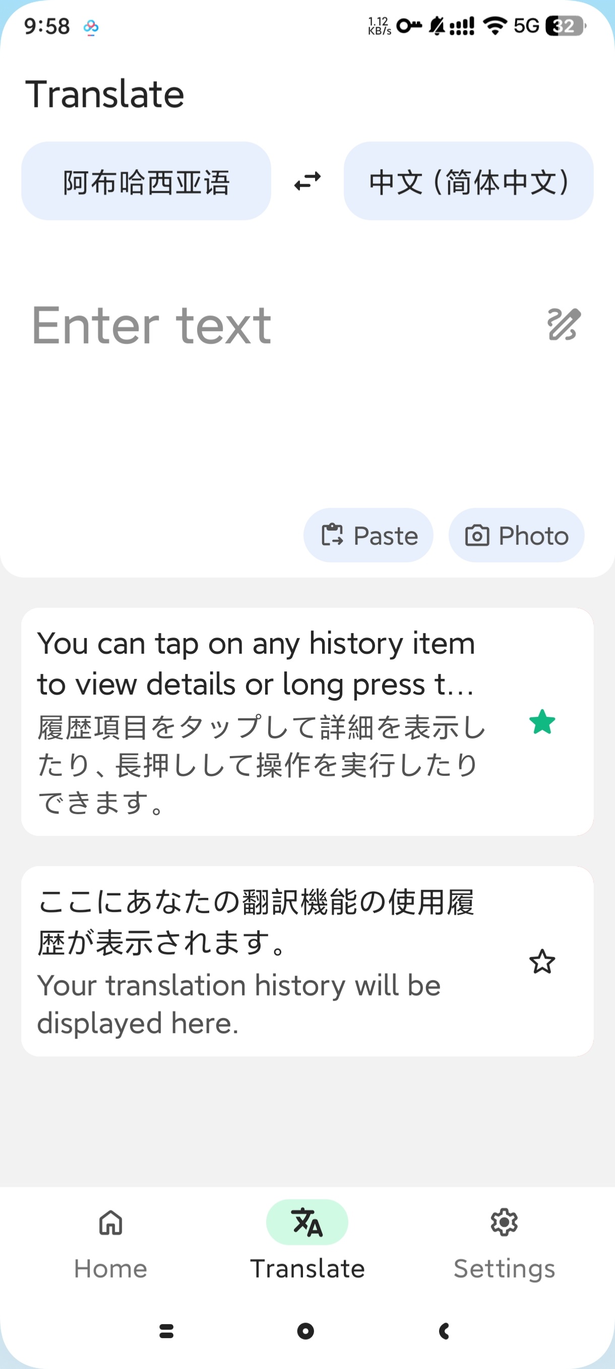 【应用简介】是一款功能强大的翻译App,支持100多种语言互译。它能实时翻译文本,不限词汇和短语数量;支持相机翻译,拍照或上传图片即可自动识别并翻译其中文字;还具备语音翻译功能,让不同语言的人可面对面交流。此外,它支持离线翻译,无网络也能用,更有跨应用翻译、对话翻译等特色功能,满足多样翻译需求 。【配合特殊网络】