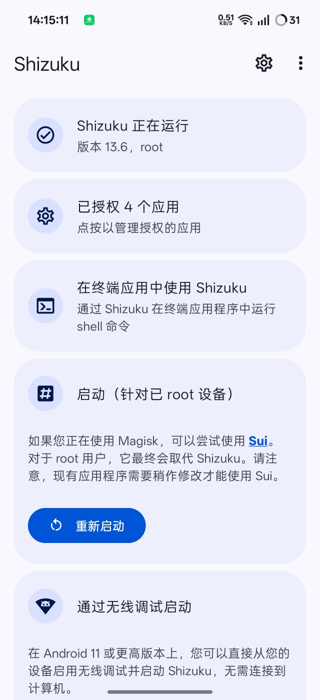 免root玩机必备的神器新版本已经可以秒启动shizuku服务了现在很多玩机软件都依赖shizuku