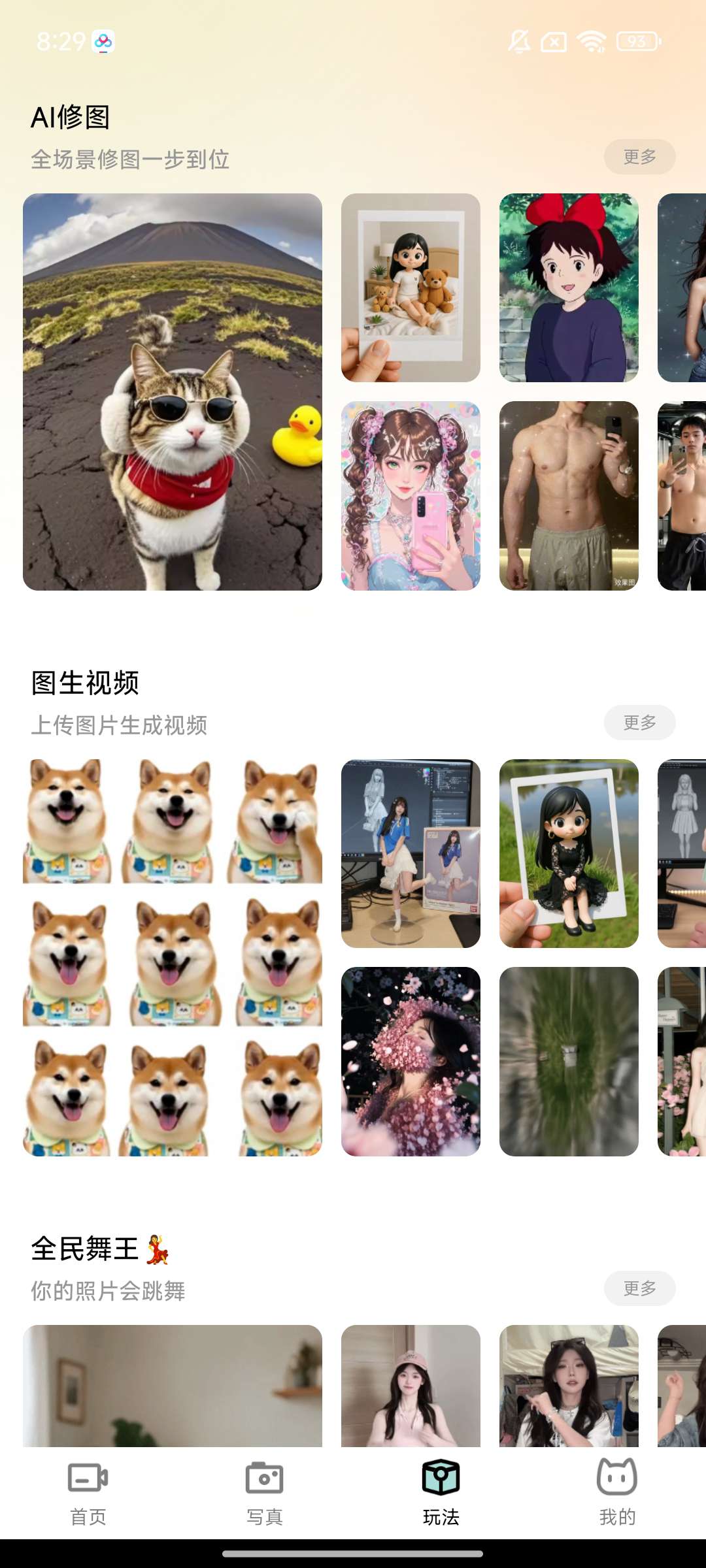 【版本说明】:【AI换脸】 AI智能识别,视频/图片人脸替换 只需一张照片,穿越古代,舞动霓裳,翩翩汉服,惊鸿岁月。各种场景满足你的需求,唯美婚纱、飘雪变装、56个民族异域风情、民国旗袍等。【AI写真】 氛围感,高级感,足不出户,轻松拍出写真大片,众多风格可供选择,新中式、美拉德、新年烟花、气,清冷、森系、元气少女等。【照片跳舞】 让照片不再是静止的艺术,而是鲜活的舞蹈精灵!一起探索照片跳舞的无限创意与可能吧,让每一个珍贵的瞬间,都以美的姿态,在你的生活中翩翩起舞