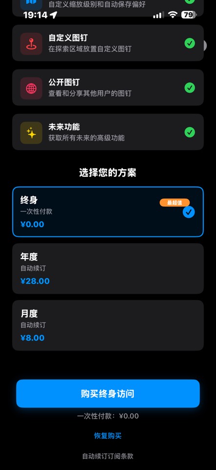 注意:优先选0元lifetime选项,别乱点免费试用!