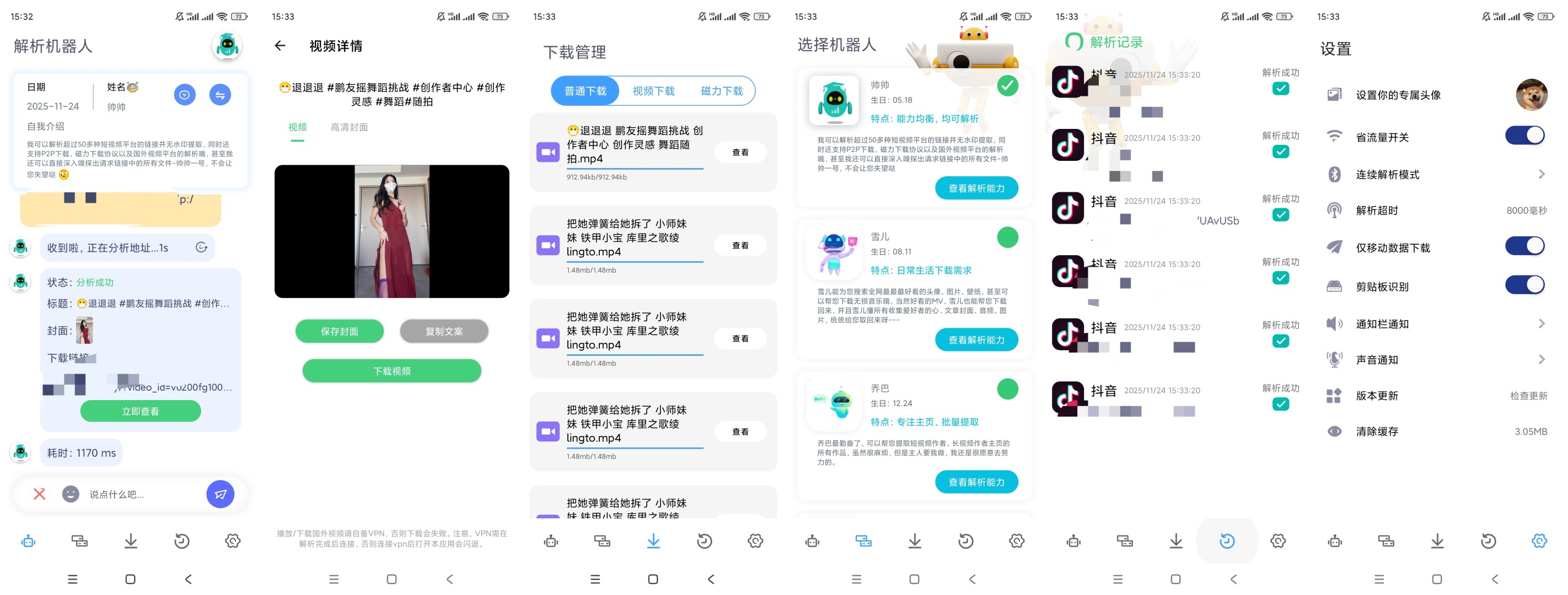 【官方介绍】:解析机器人是一款功能强大的视频解析工具,旨在为用户提供多样化的视频下载和解析服务。该软件通过多个机器人助手,帮助用户从各种平台上获取所需的视频内容,满足不同用户的需求。