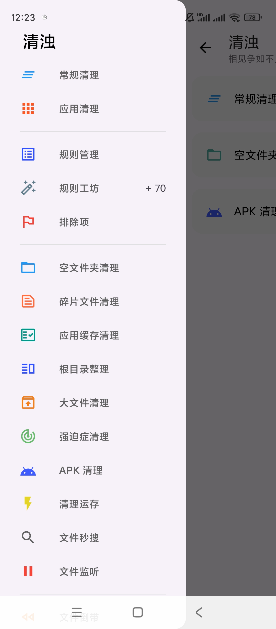 【官方介绍】:清浊是一款专为安卓设计的手机清理工具,以其小巧体积和强大深度清理能力而受到欢迎。通过云端规则库精准扫描各类应用缓存、日志、卸载残留、空文件夹、重复文件及APK安装包等,能有效释放存储空间并提升手机运行速度。用户可以利用软件快速扫描手机中的垃圾,并彻底粉碎和清除,帮助一键释放手机内存,不断提高手机的运行速度,延长使用时长。