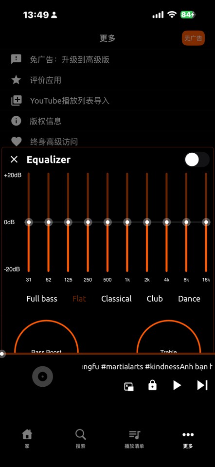 • 强大的均衡器 – 高级 10 段均衡器,提供低音增强、古典、俱乐部、舞曲、流行、摇滚等预设模式。