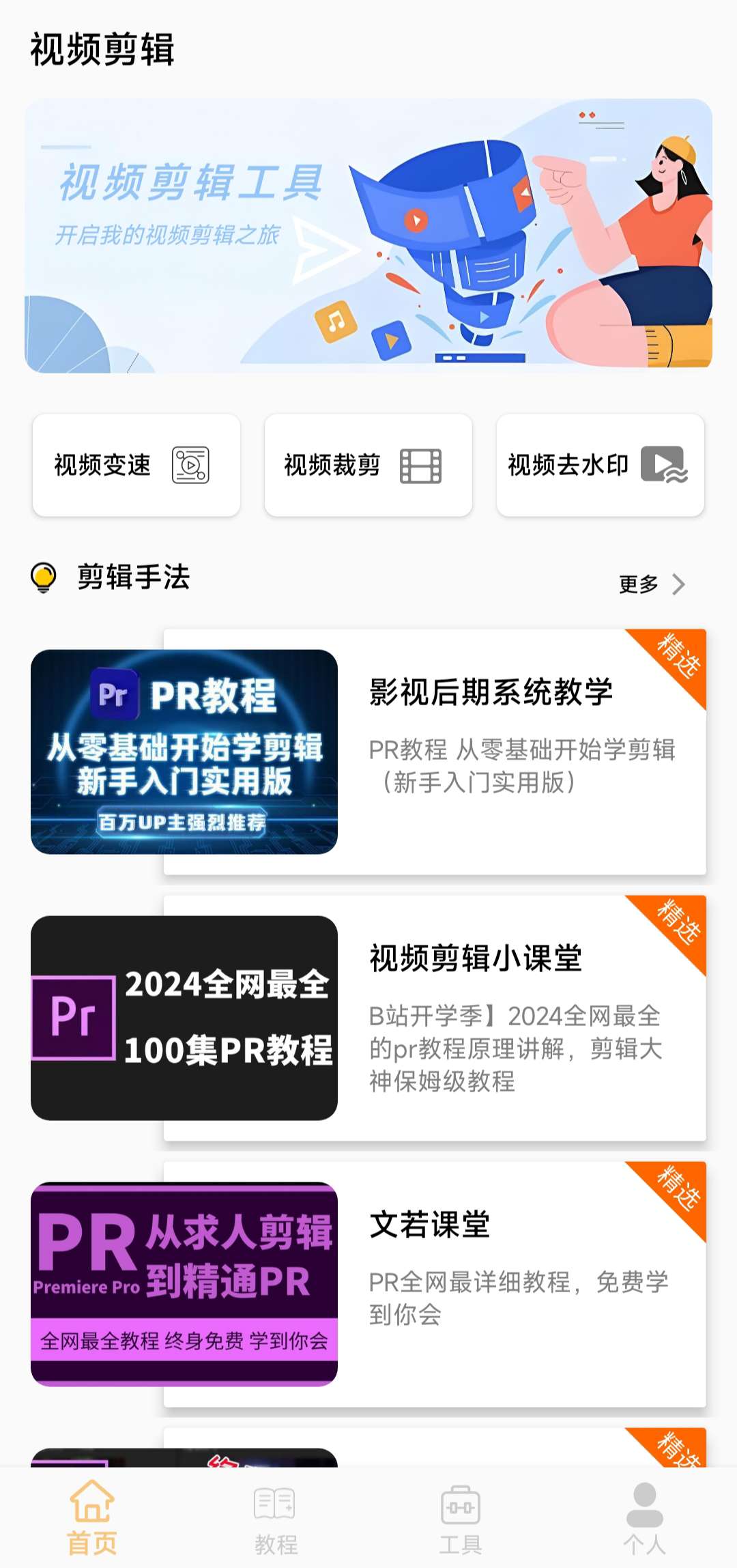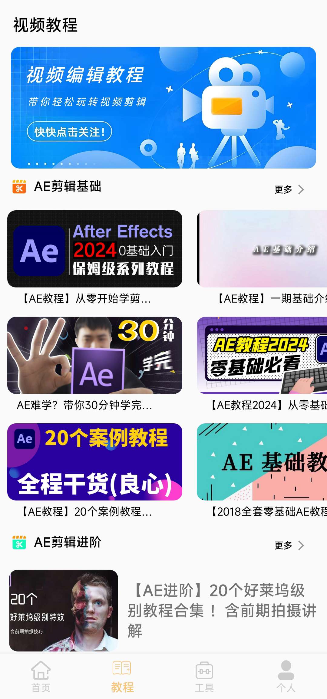【应用简介】AE剪辑,手机端视频剪辑软件!提供视频分割、变速、倒放、添加贴纸文字等丰富功能,还有一键去水印、分屏制作等高级工具。支持高清导出,界面简洁,教程详尽,小白也能轻松上手,随时随地创作精彩视频,快来开启你的创意之旅 !