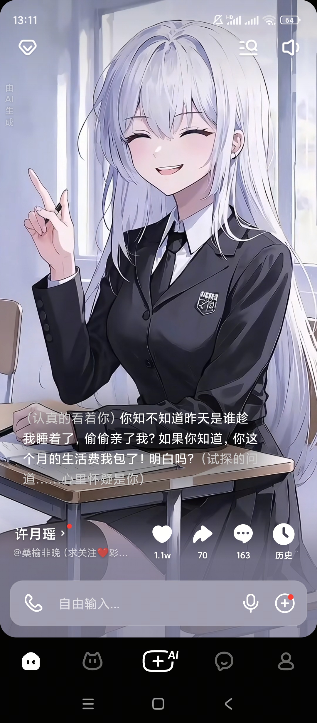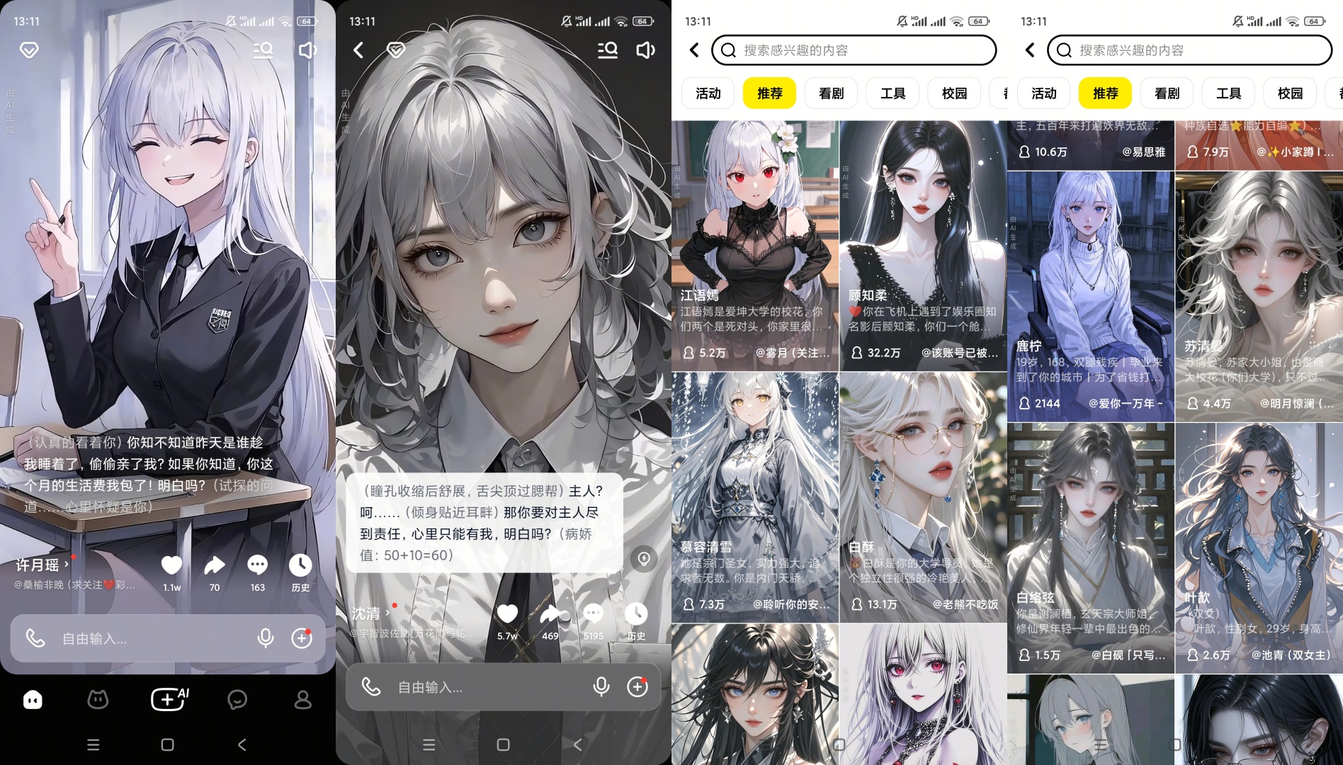 【官方介绍】:猫箱是一款功能非常强大的AI实时聊天软件。软件内有非常多性格鲜明的AI角色,每个角色都有专属的配图、语音和角色简介等,你可以根据自己的喜好进行选择,不断通过语音交流或者文字方式与AI角色进行深度交流,开启专属的剧情。你可以充分发挥想象力与角色进行聊天,体验从陌生到熟悉的过程,感受独特的AI奇遇。你可以随时切换不同的角色,展开不一样的剧情。