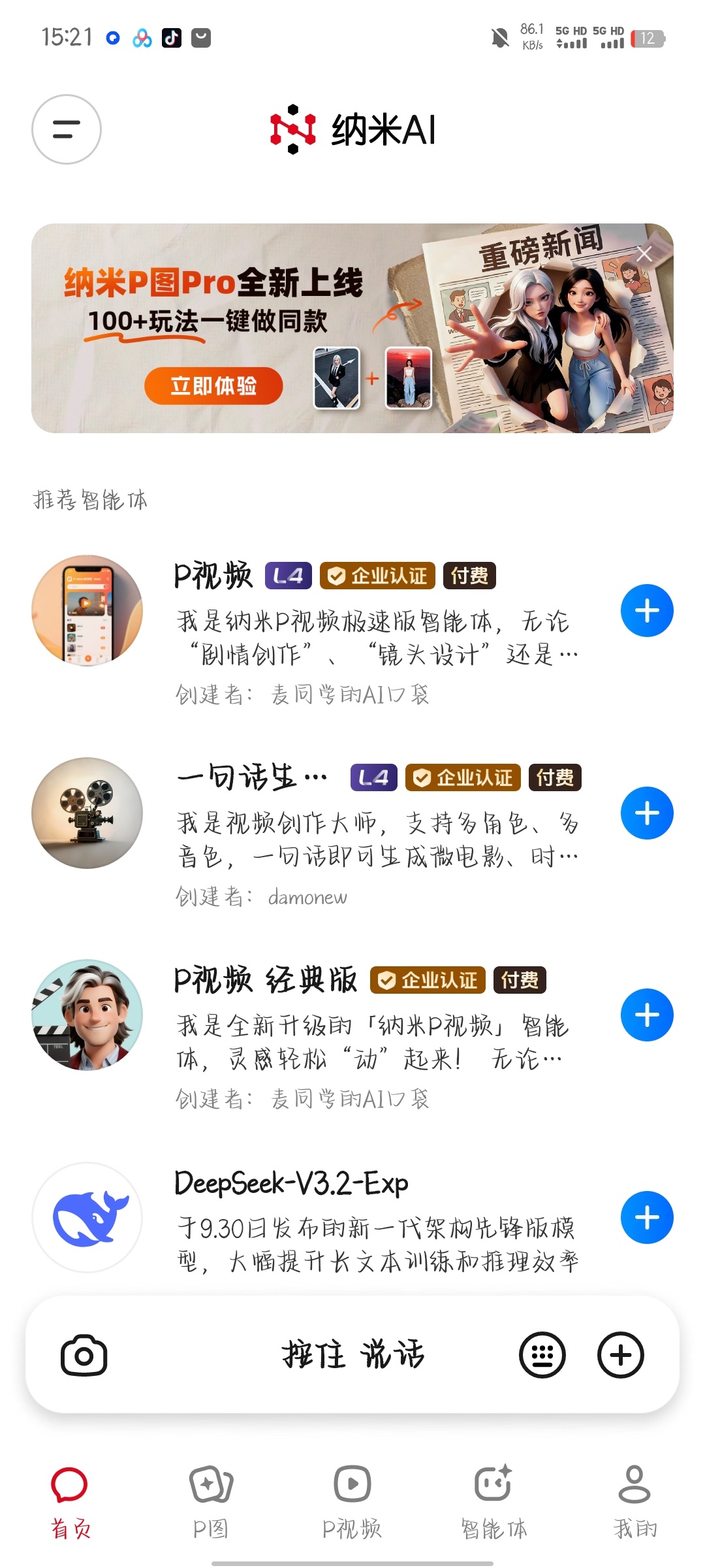 •纳米AI,集成DeepSeek-V3/R1,智脑,通义千问QwQ-32B等十六家大模型,支持深度推理、个人知识库管理,大模型群聊、语音生图、AI视频创作、文档和图片解读等能力!