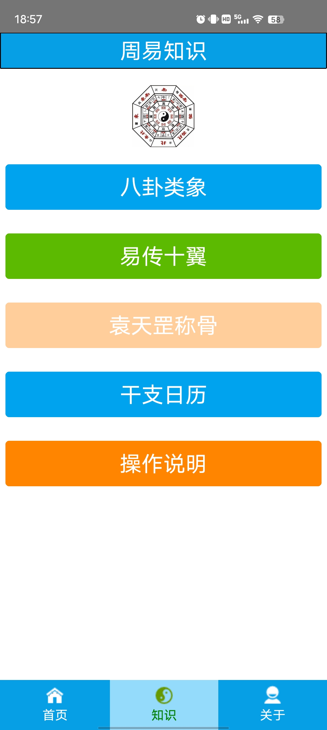 周易查询:提供周易本经和十翼的查询,还整理了八卦类象、易传十翼、袁天罡称骨、干支日历、操作说明等全面的周易知识,方便用户随时随地查询周易知识,省去带书翻阅的繁琐。
