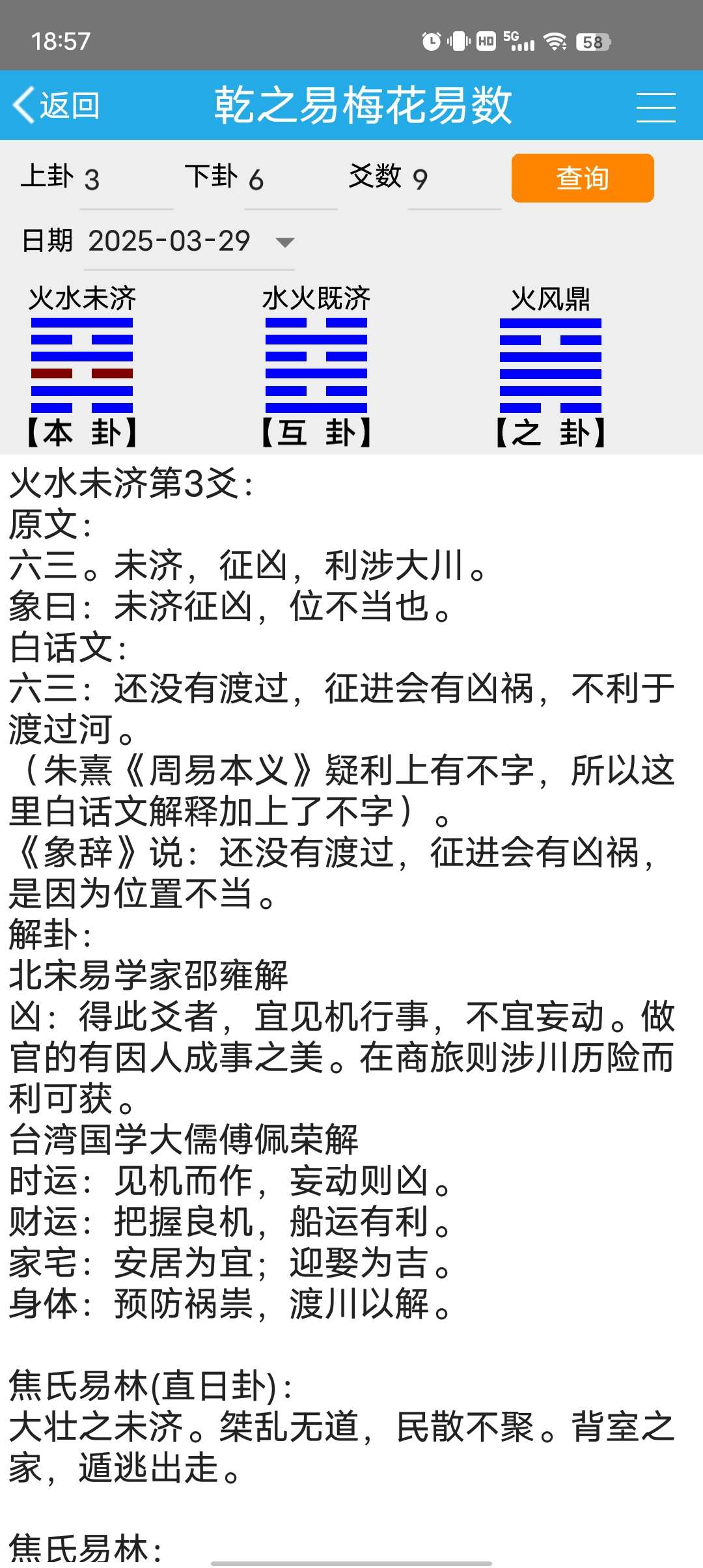 多种占卦操作:提供数字查询、大衍筮法、梅花易数、铜钱操作、六爻排盘等多种操作方法。其中,数字占卦、梅花易数、铜钱占卦起卦简单易操作,大衍筮法需要使用五十筹策按步骤成卦,较费时间。操作结果采用周易六十四卦的卦爻辞和焦氏易林的四言诗。