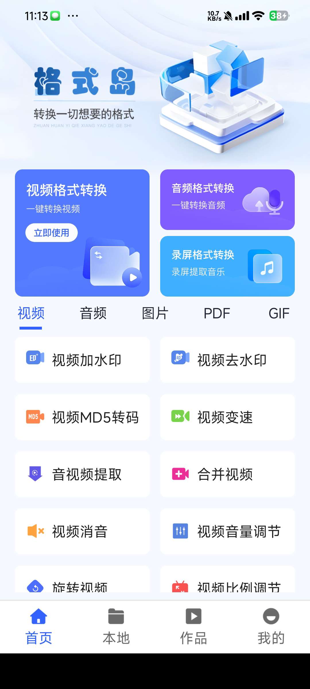 【应用简介】格式岛app可以在这里转换一切你想要的格式,不管是音频,视频,文档,图片等格式,都能在这里支持转换,不必在担心不能通用了,还有一些其他的功能也能操作 并且支持短视频去水印