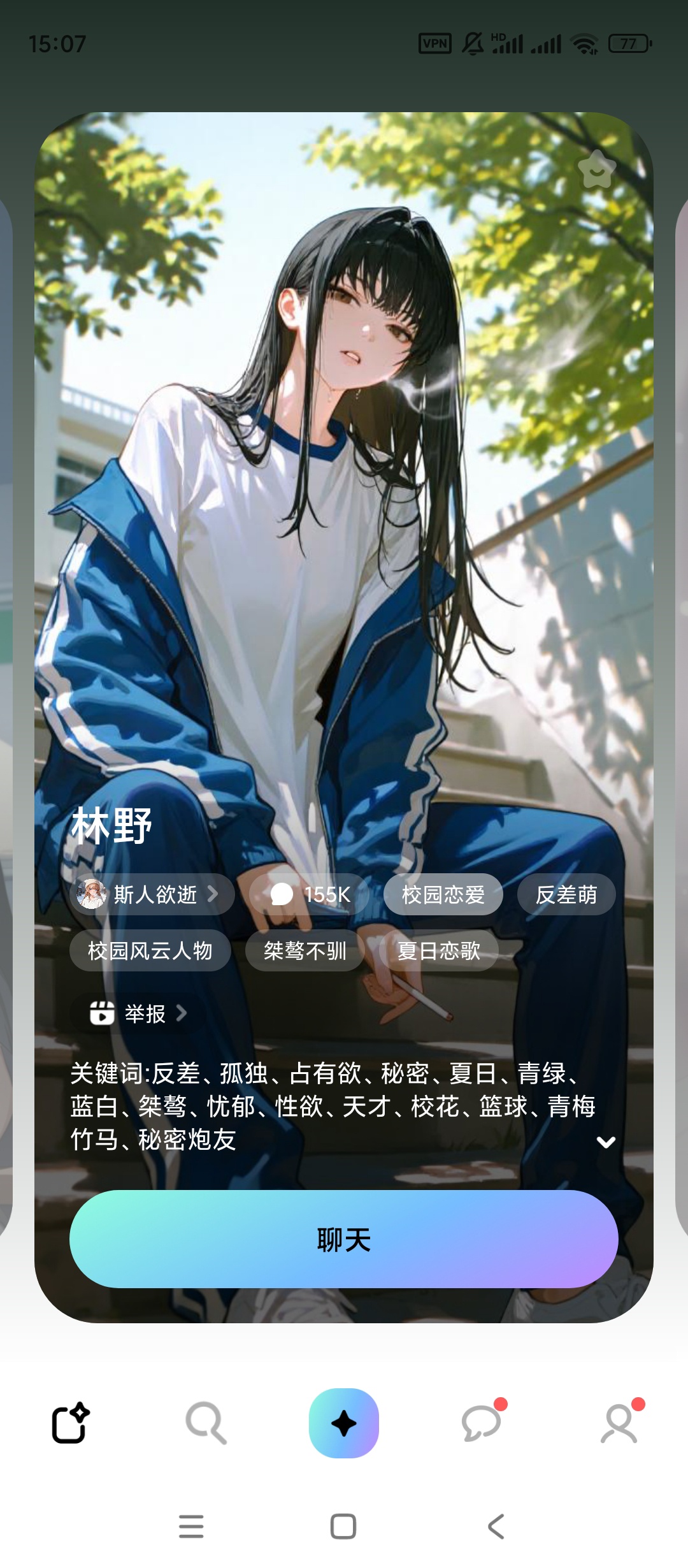 【官方介绍】:MiraiMind是日本人气最高的AI恋爱软件之一,以二次元风格为主,采用不同类型的AI模型打造二次元宇宙。在这里用户不仅可以与社群中性格各异的二次元AI聊天,还可以发挥自己的创造力,制作你的AI恋人或伙伴。通过提示词描述可以绘制出不同风格的角色形象,让你创建的人物更加生动。同时支持群聊功能,可以组建一个有趣的虚拟大世界。