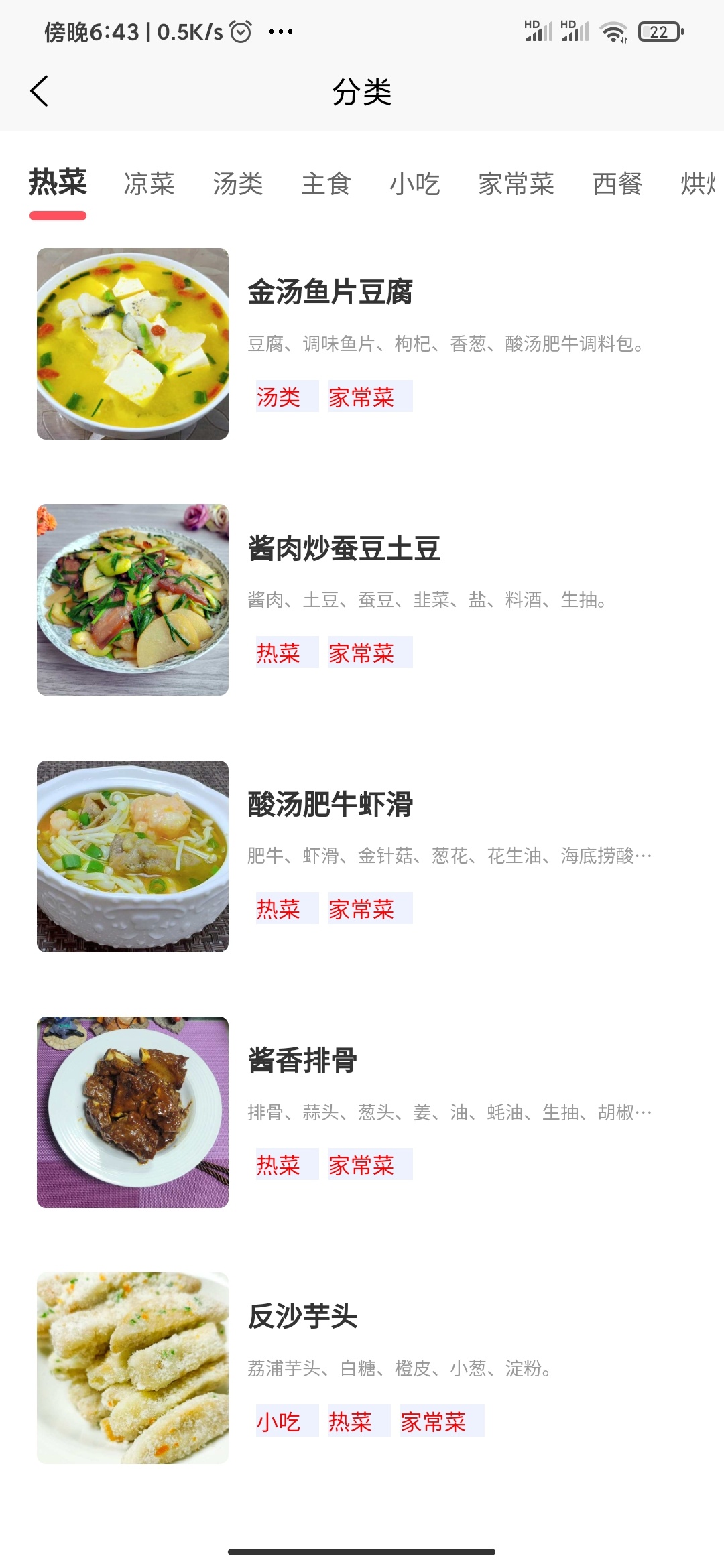 家常菜全收录,热菜/凉菜/汤类/主食等分类清晰,搜菜名一键找教程