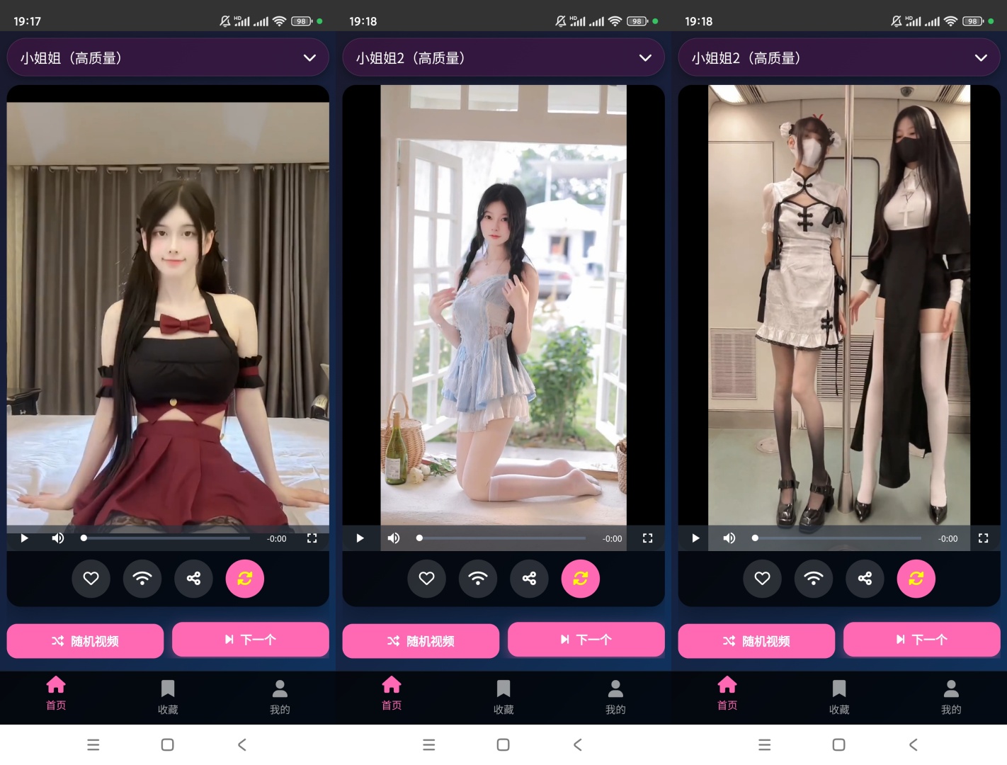 打开 App 就是「小姐姐系列」这类超对味的内容分类,首页直接陈列吸睛视频,点进去就能沉浸式看小姐姐~ 播放页功能超贴心,爱心收藏、投屏、连播等按钮随手点,想咋看就咋看