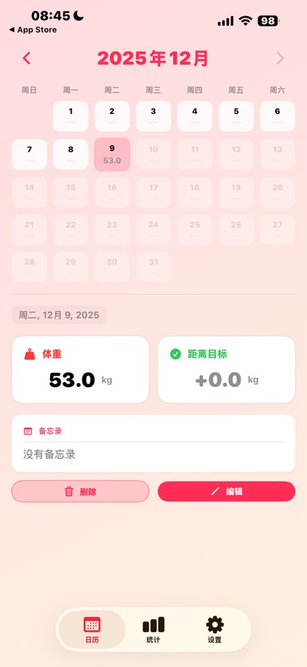 【楼主点评】:体重小本 – 体重记录功能实用,操作简单,值得一试!