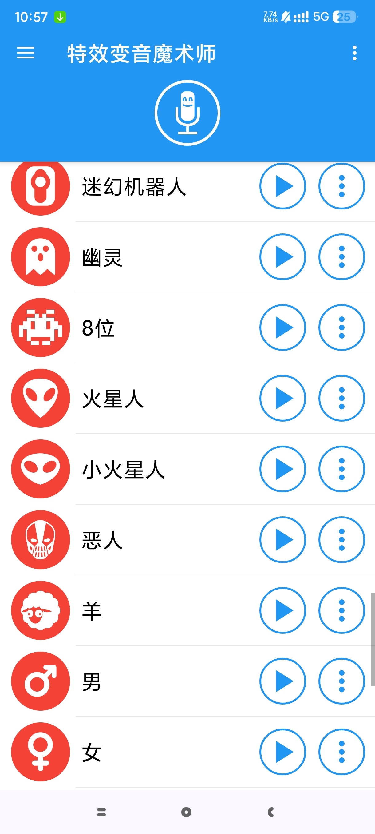 【应 用 介 绍】:特效变音魔术师(voice changer with effects)是一款来自国外的音频处理工具,主要提供了丰富的声音效果和编辑工具,使用户能够轻松地改变声音的音调、音色和音质,创造出独特的声音效果,你可以在和朋友们聊天的时候,突然转换自己的声音,真的是特别好玩的,用户的娱乐社交更加丰富多彩,即使没有使用过也能轻松上手。