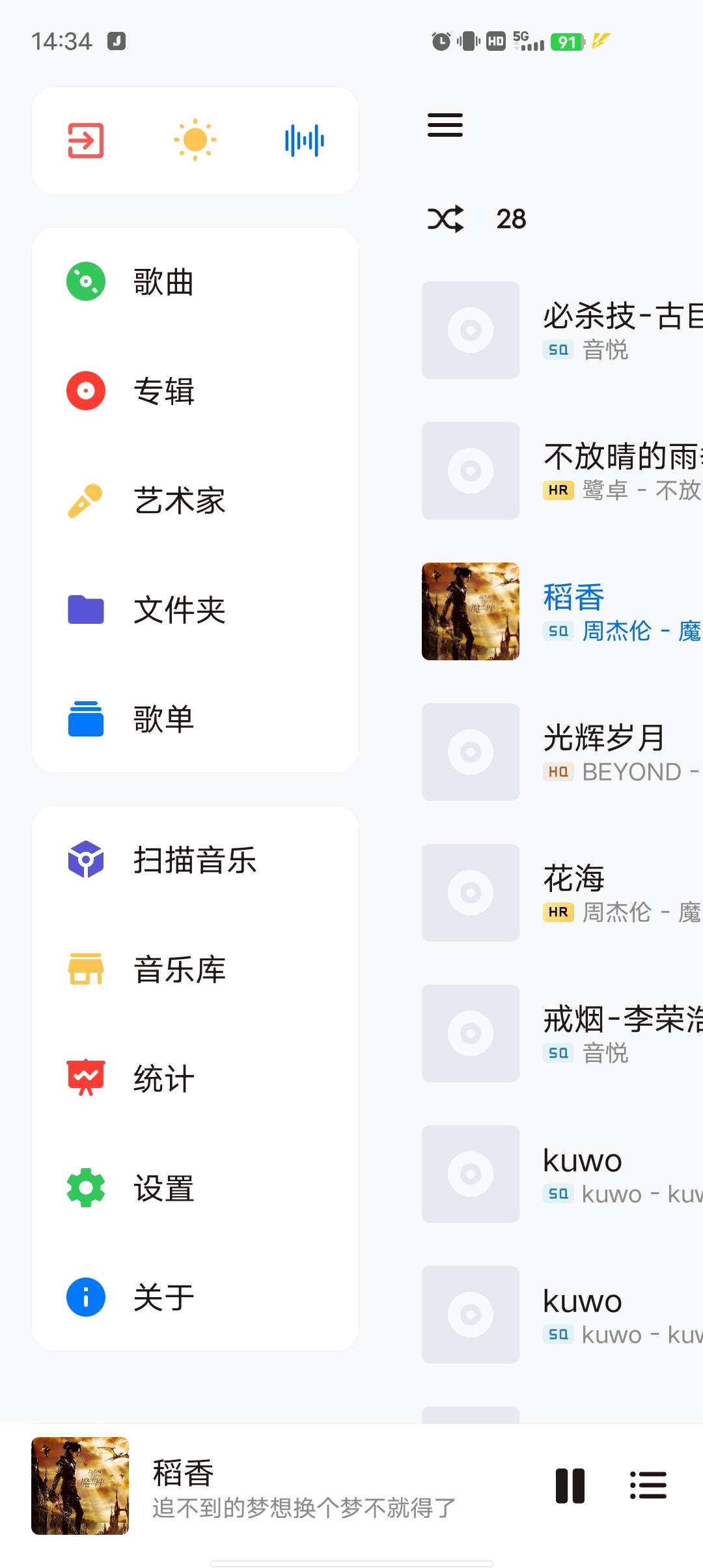适配竖屏、横屏、平板界面,支持多种音频格式 完善的专辑艺术家分类,支持歌单,支持歌曲统计