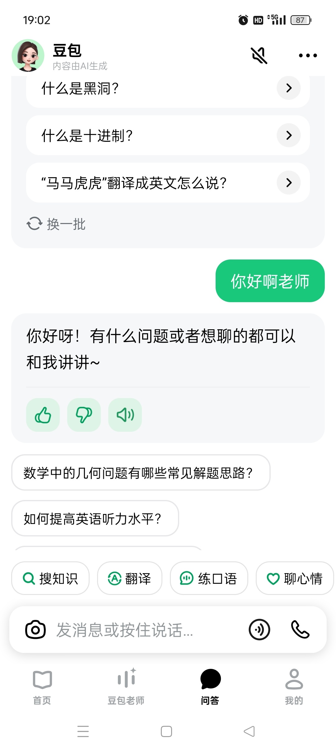 豆包老师:难题不会做?耐心的AI老师分步讲解,自由提问,即时解答。