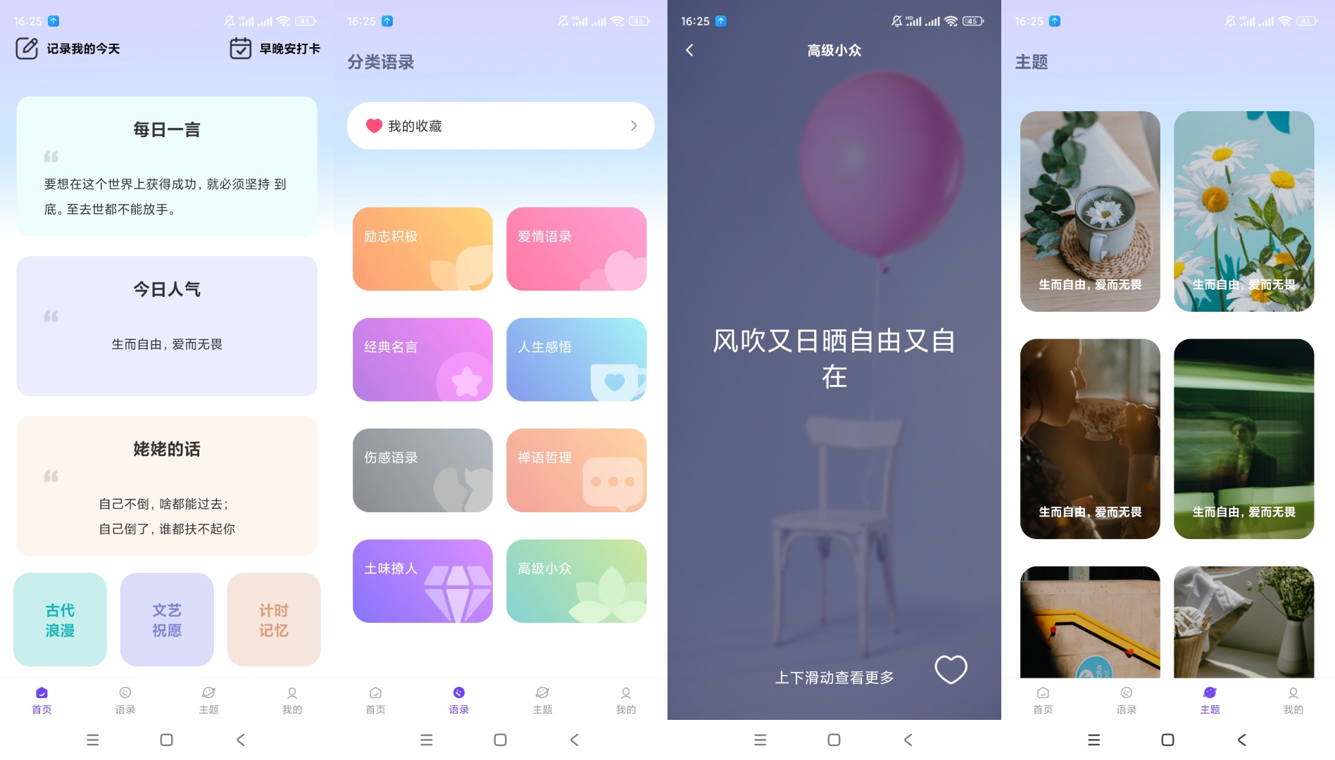 【个人评价】:一个语录软件 短句还可以 挺有文艺气味的 部分也挺接地气的
