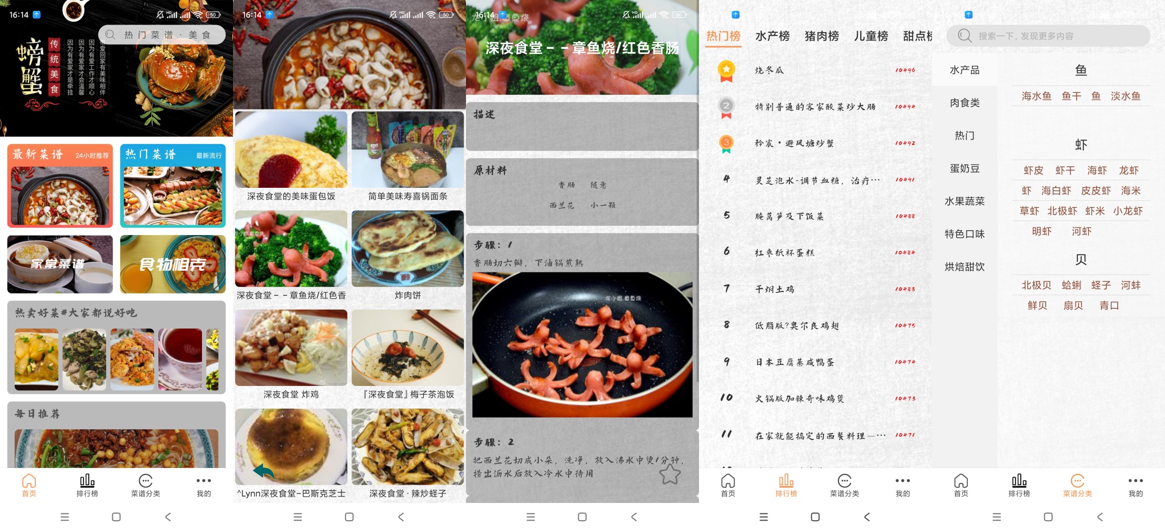 【个人评价】:菜系分类挺多的 菜谱软件没什么好评价的 就是单纯学习炒菜流程
