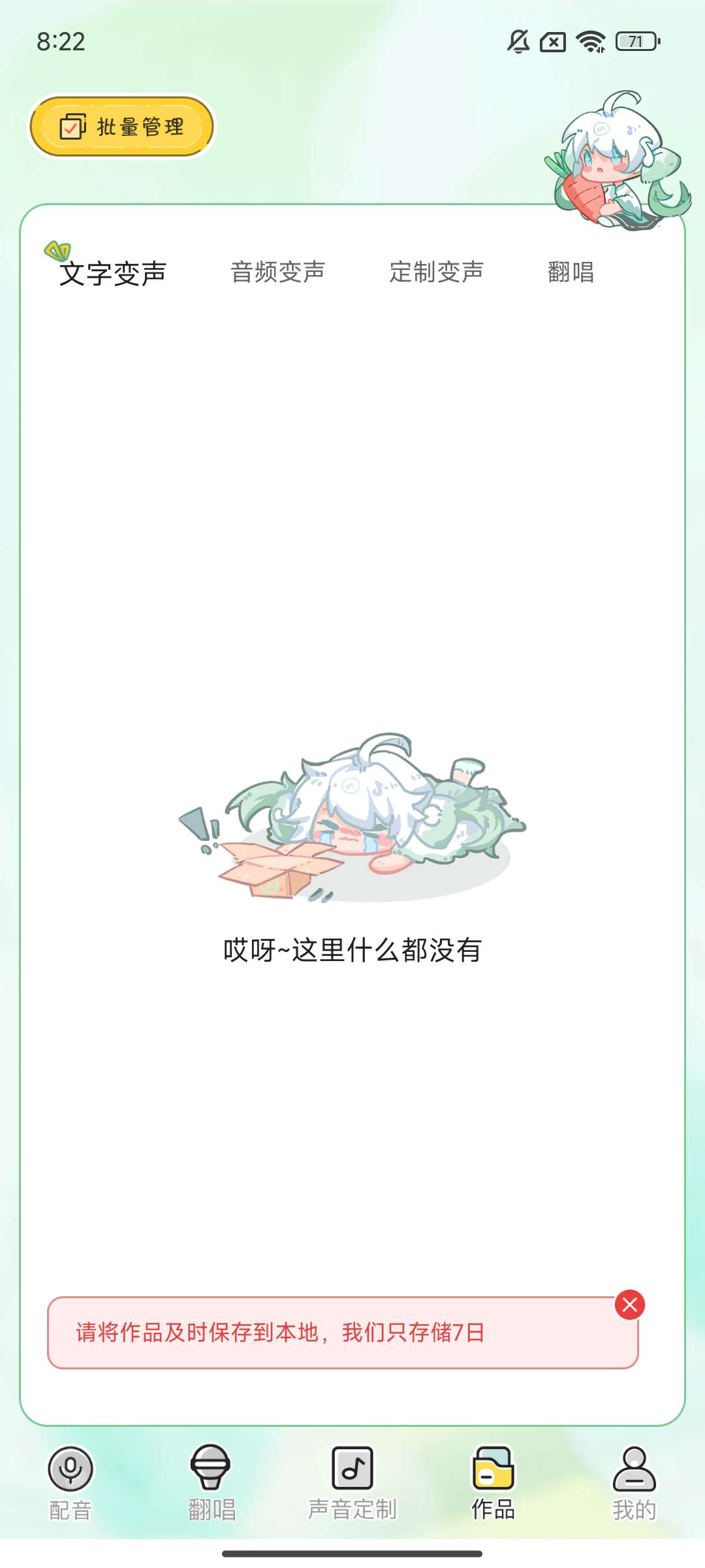 芊芊妙音app最新版作为一款可以轻松定制自己专属配音的软件,轻松在这里定制自己的角色语音包,智能化变声使用,音频提取功能非常强大,还有不一样的工具可以免费提供给用户使用,制作自己想要的语音内容,免费使用,快速开始软件编辑,输入文字生成不同的语音作品,适合不同的手机端安装使用,ai制作效果非常优秀,带给用户最好的音频效果,纯净式的界面内容设置,无广告免费开始软件使用,有需要的用户千万不要错过!