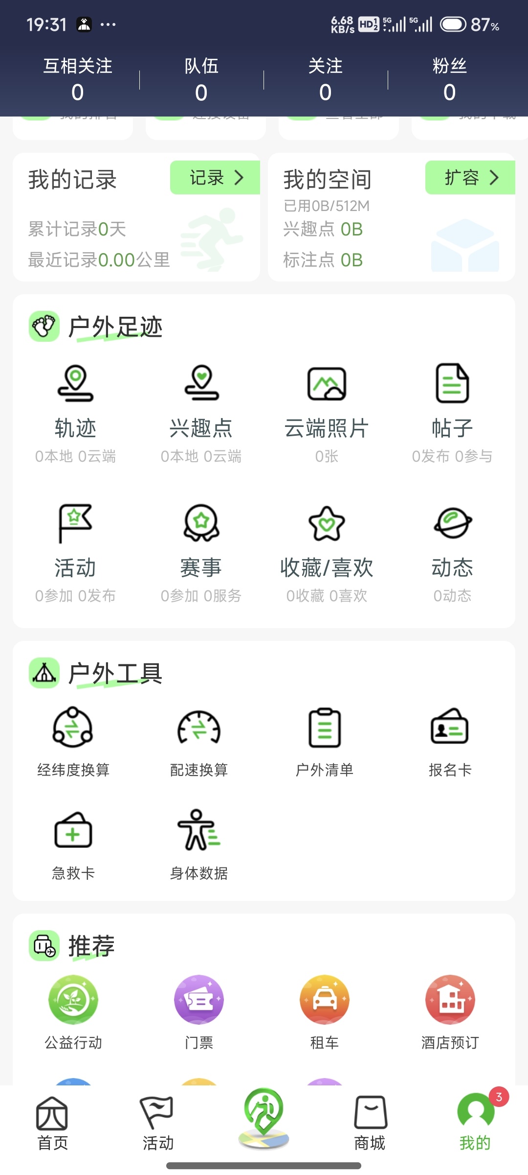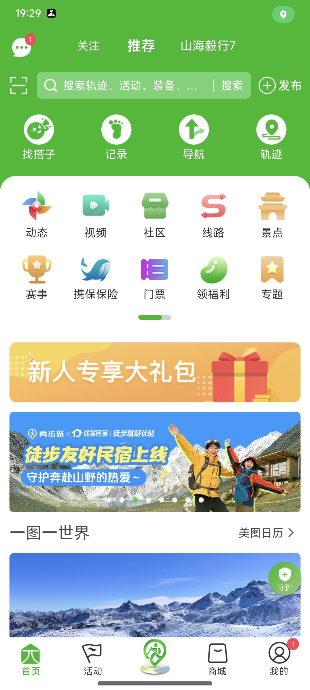 【软件介绍】:这个软件是面向户外场景的综合工具,它可以实现轨迹记录、导航定位、卫星地图查看等核心户外功能,同时支持记录徒步、爬山等多种运动类型的行程数据,还能管理兴趣点、云端照片等户外足迹相关内容,也提供了经纬度换算、配速计算等户外工具,此外还包含户外活动赛事的查询与参与、装备相关的商城服务,以及组队找搭子、社区交流等社交互动功能,整体覆盖了户外出行从规划、记录到社交、消费的全流程需求。