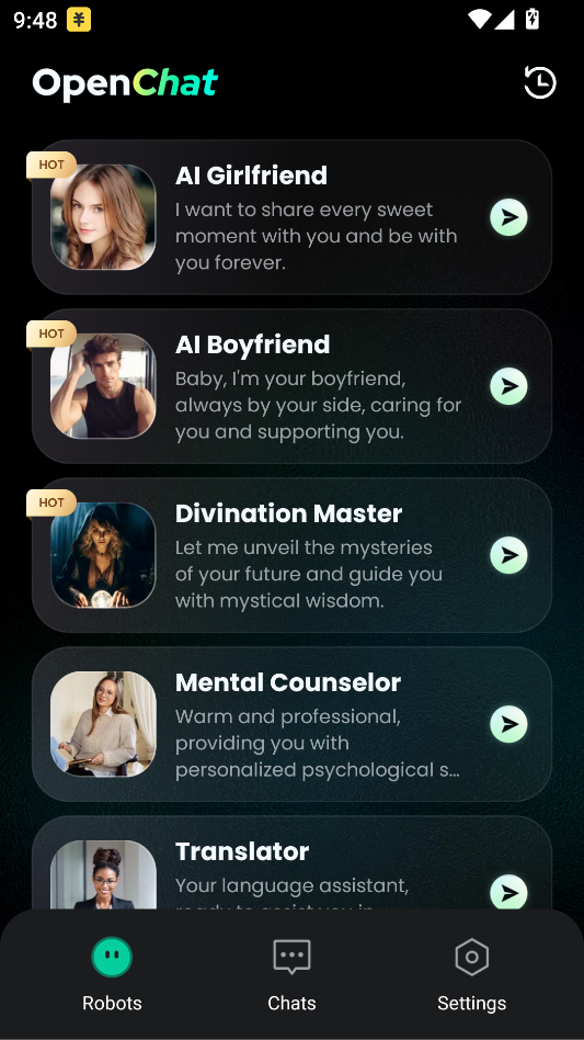 【应用简介】OpenChat一款AI智能聊天助手,内置AI女友,AI人工智能助手等等