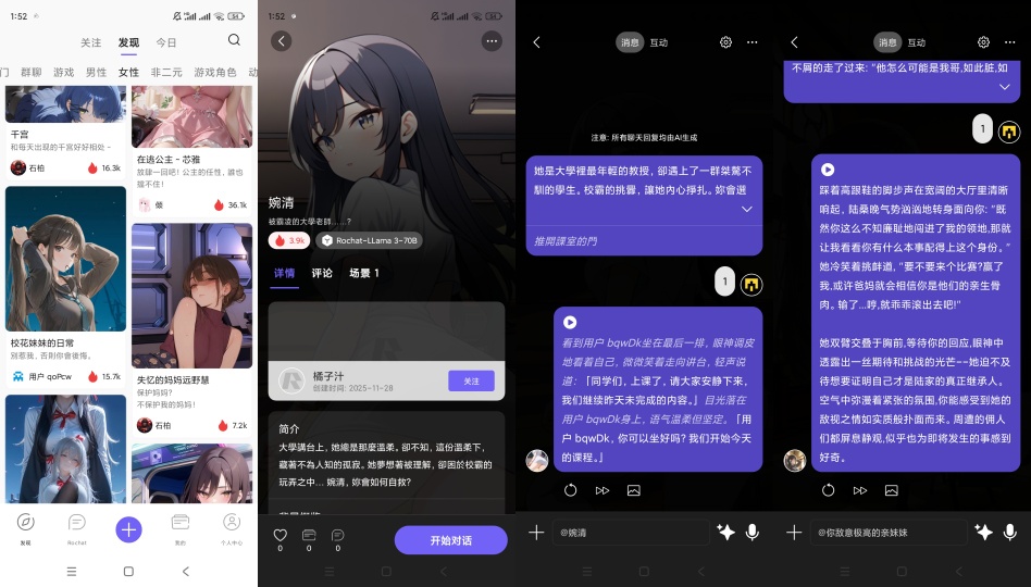 【官方介绍】:Rochat是一个很好用的ai聊天软件,它里面拥有超多的剧情内容,你可以随便选择,然后就能融入里面的剧情了,你也可以自己去创建角色,然后再进行对话聊天,基本没什么限制。