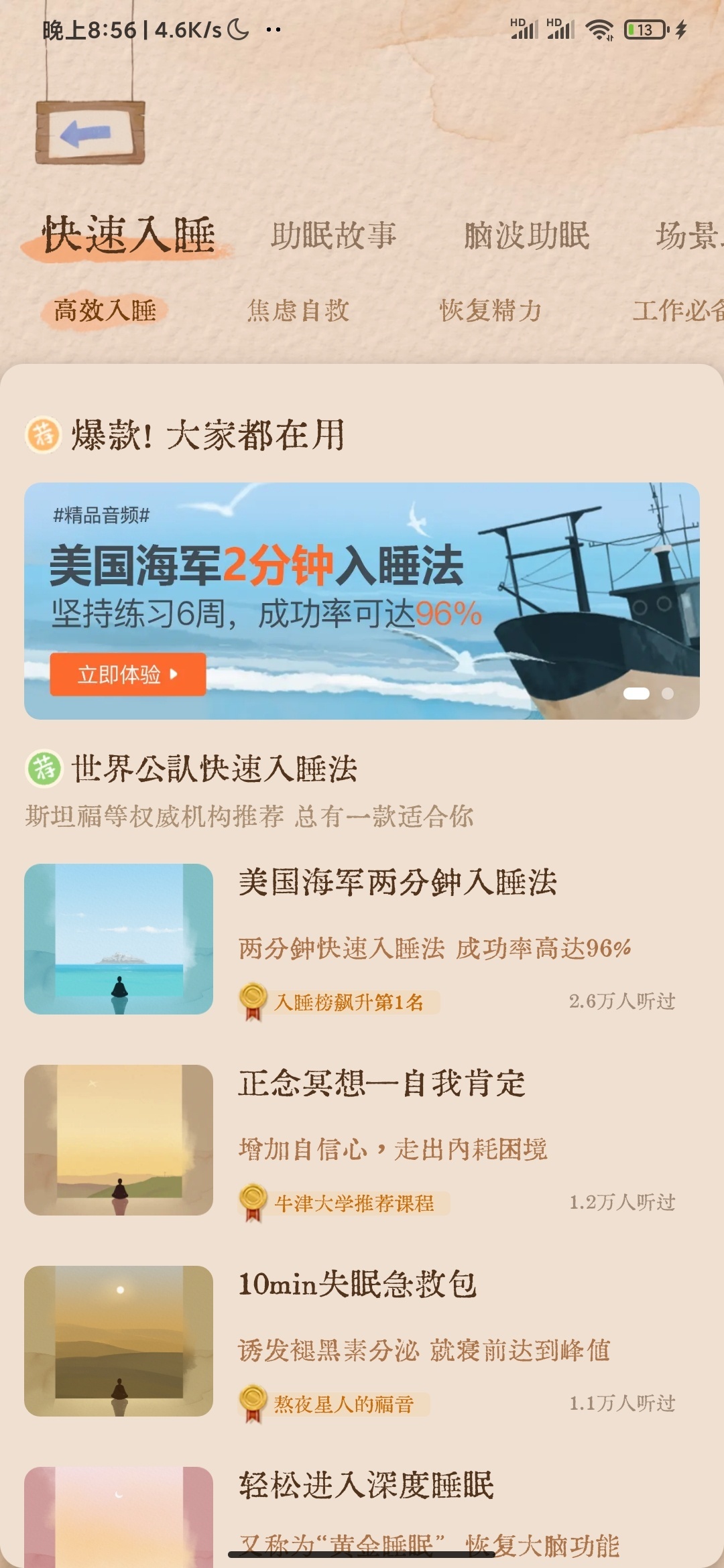 软眠眠是一款主打助眠放松的APP,核心功能是提供白噪音、助眠技巧等多样内容,雨声、风声可自由搭,还有两分钟入睡法这类实用技巧,搭配定时渐弱、断网可用,能帮你快速平复情绪,利用睡前时间轻松进入睡眠状态。