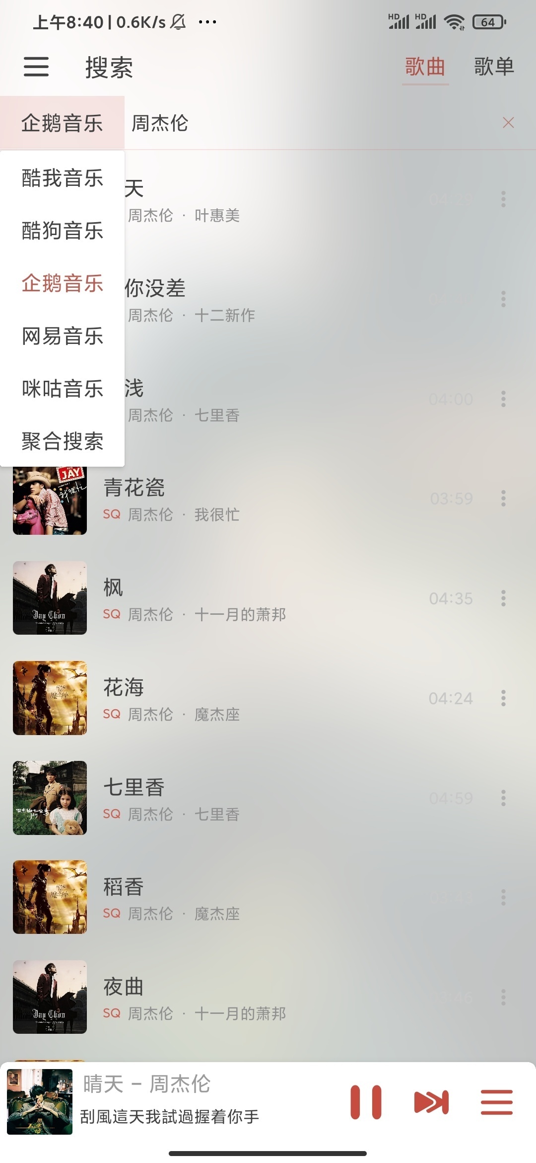 听歌及下载: 提供普通、高品质、无损APE、无损FLAC,臻品母带等多种音质