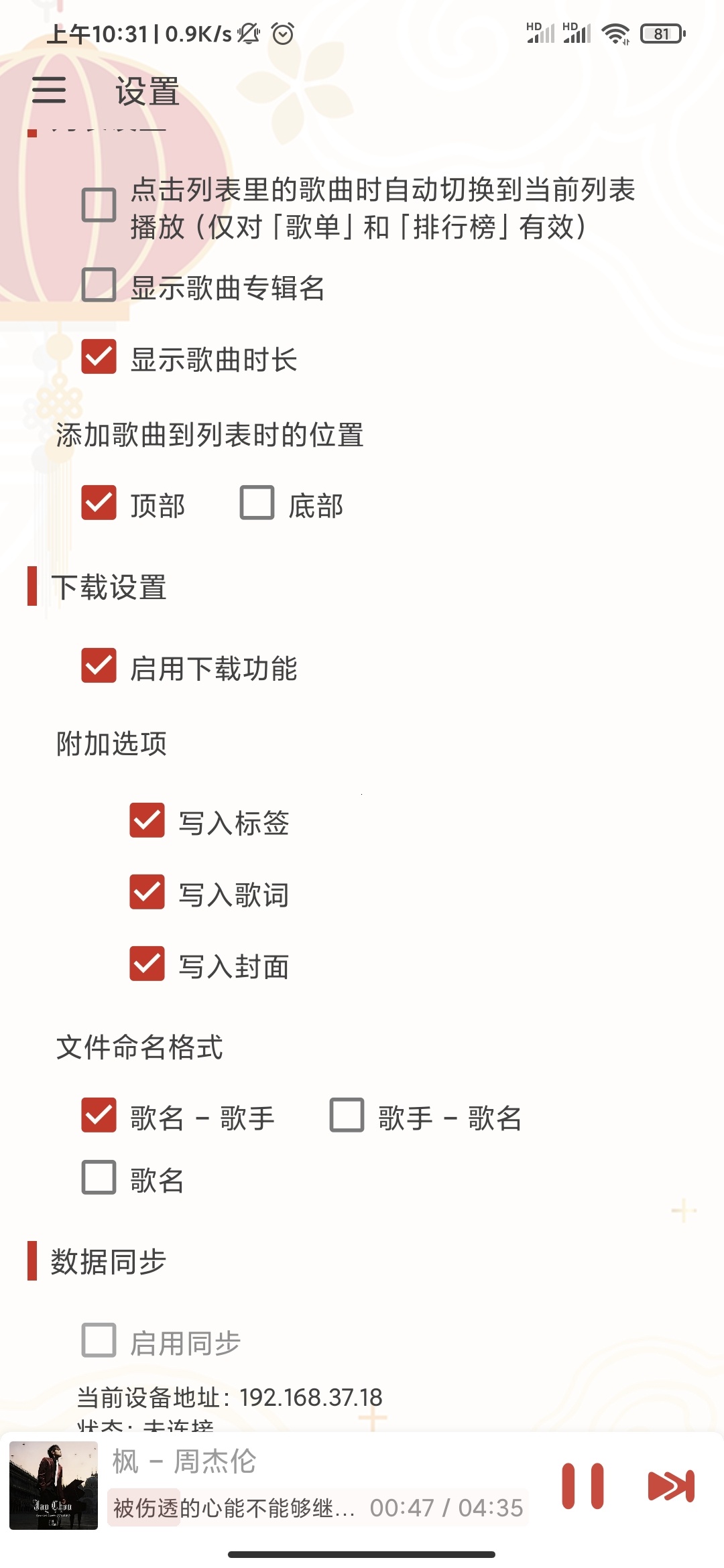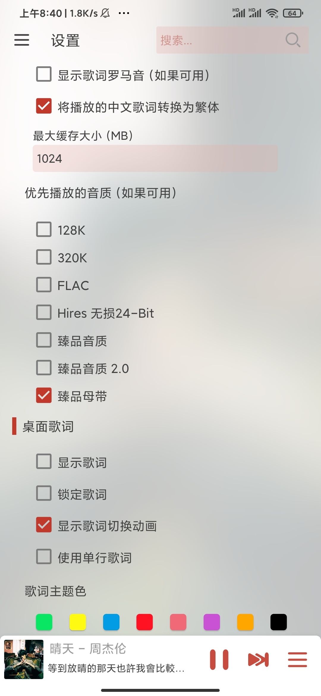 具备智能搜索功能,可通过输入歌手名、歌曲名等进行搜索,还能显示歌词和专辑封面。