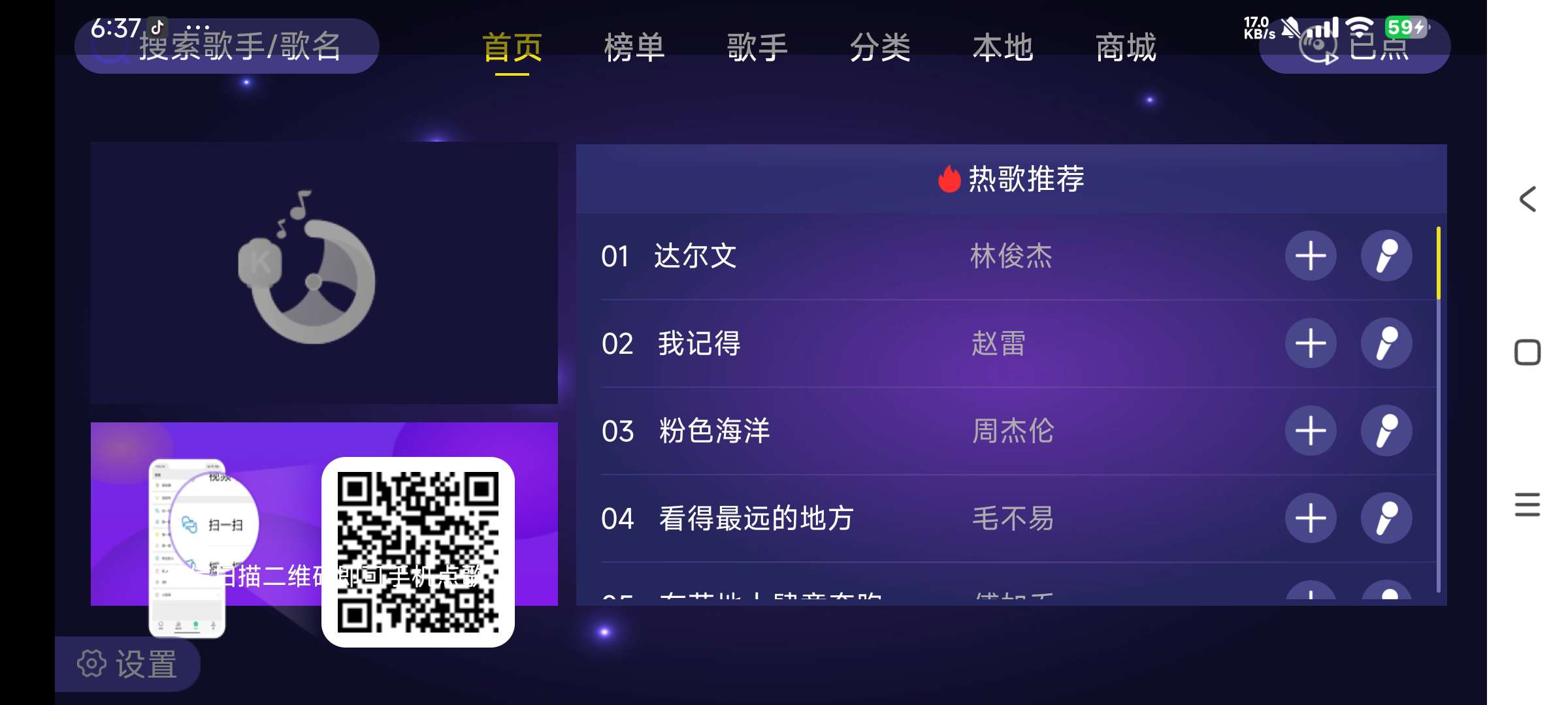 【软件简介】家庭ktv是一款超级新颖好用的可以在电视端进行使用的家庭版建议KTV音乐播放器,通过软件可以实现在家里唱K的体验,超多的音乐资源满足不同的唱歌需求
